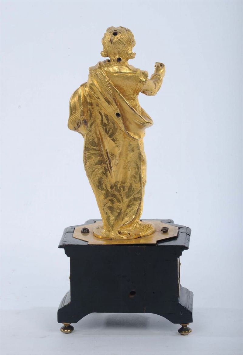 La figura, realisticamente realizzata con ricchi abiti cesellati, poggia su una base poligonale in ebano con un inserto in lapislazzulo applicato su cornice in metallo dorato. Già Sotheby’s, Londra dicembre 1980, lot 184