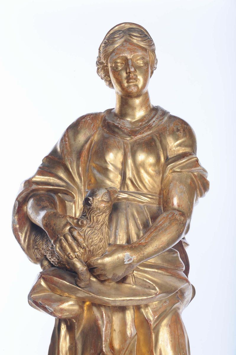 A gilt wood sculpture representing Saint Agnes, Central Italy 17th century
