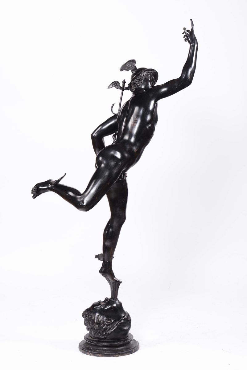 A large molten and patinated bronze winged Mercury, Italian or French caster, 19th century