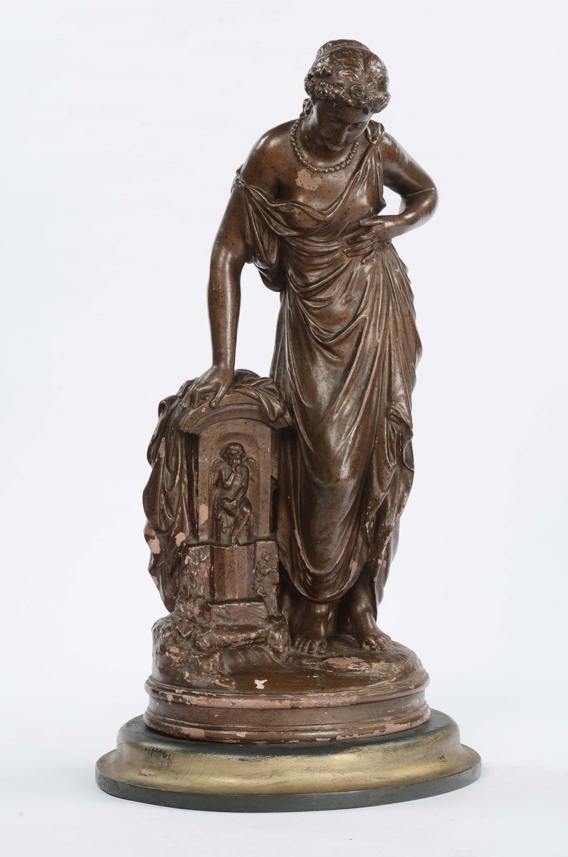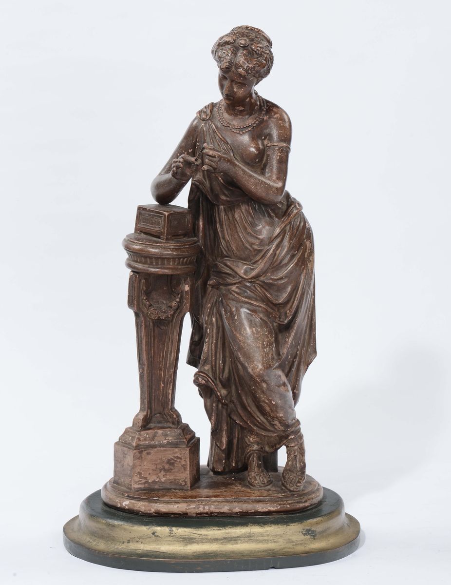 A pair of painted earthenware female allegorical figures, signed by Ch. Janson, late 19th century