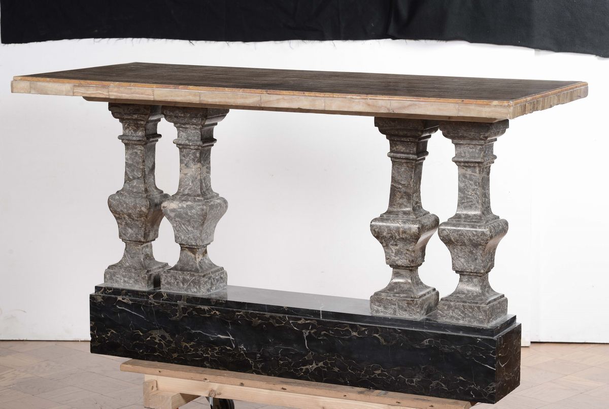 Elements of a grey veined marble banister, various periods 19th - 20th century