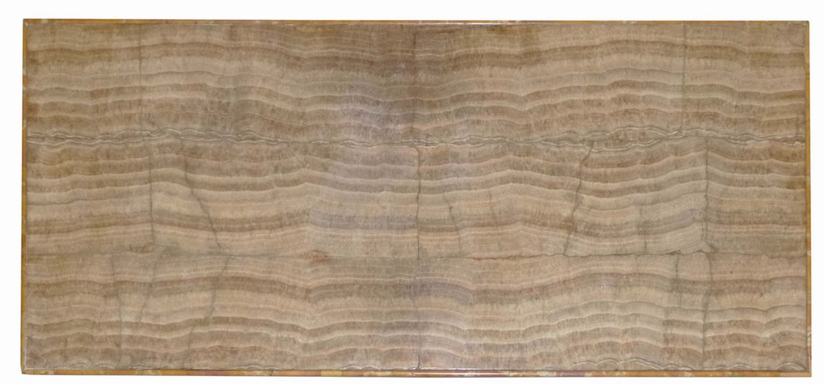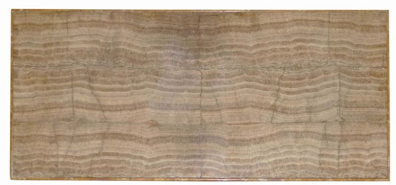 Base a plinto rettangolare e piano lastronato in onice sulla sommità
