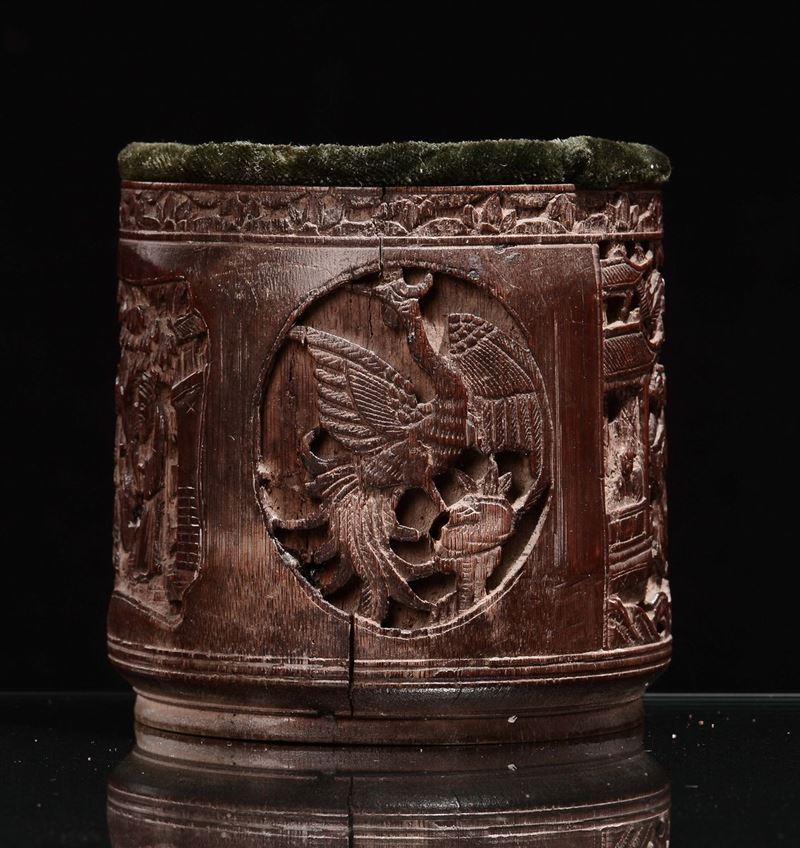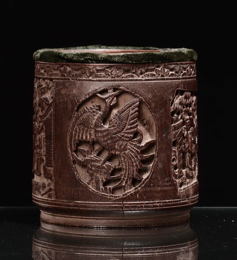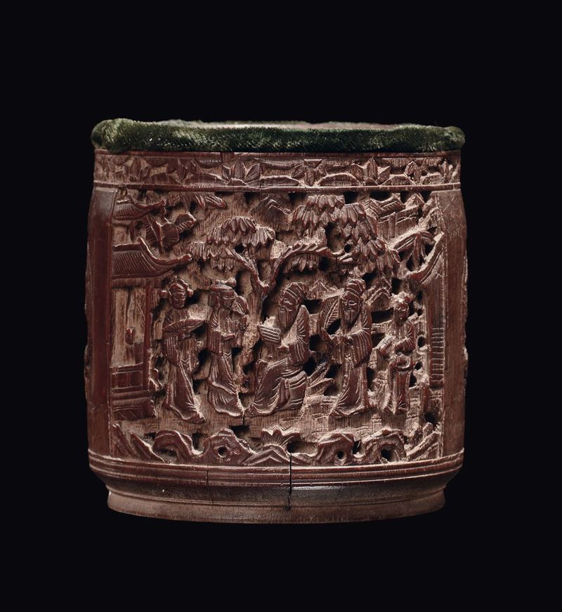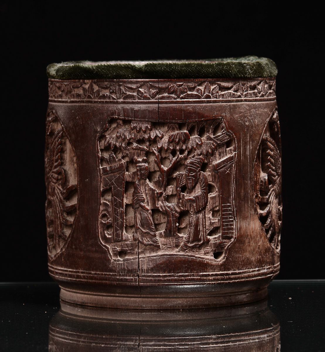 A bamboo brushpot with figures and animals, China, Qing Dynasty, 19th century