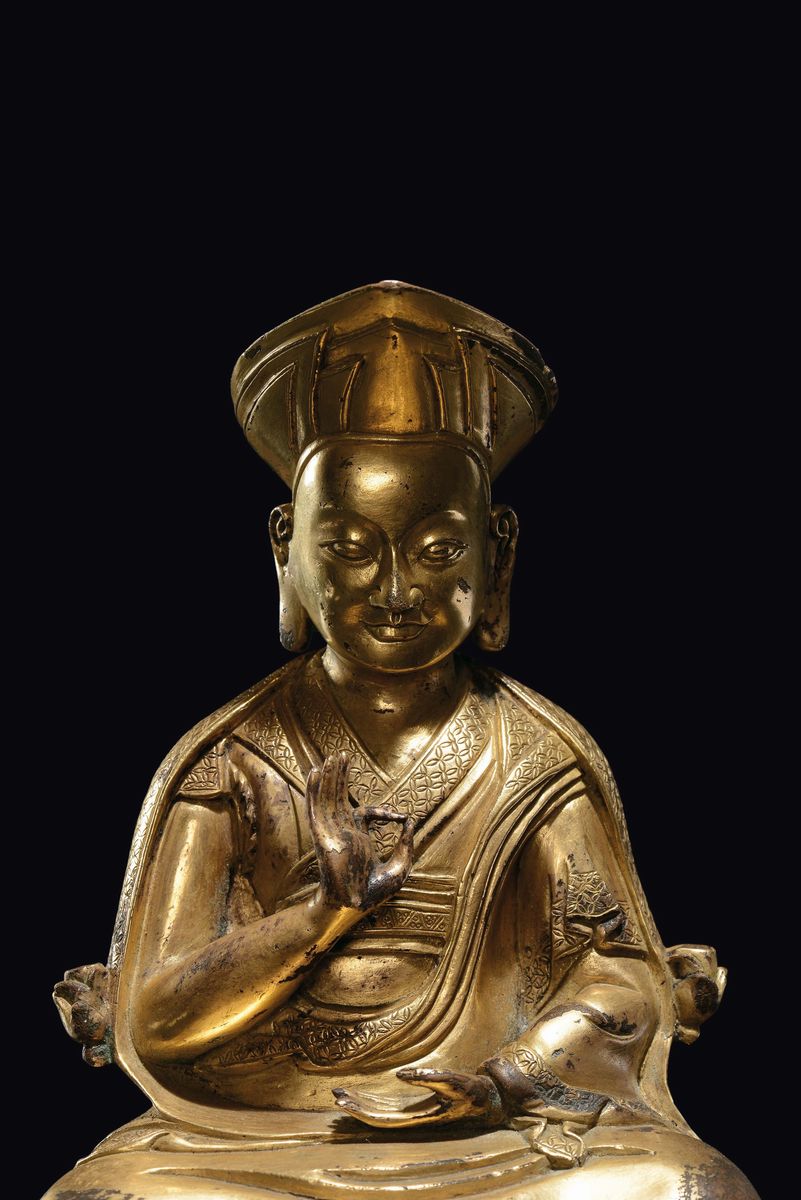 A beautiful gilt bronze Lama, Tibet, late 17th century