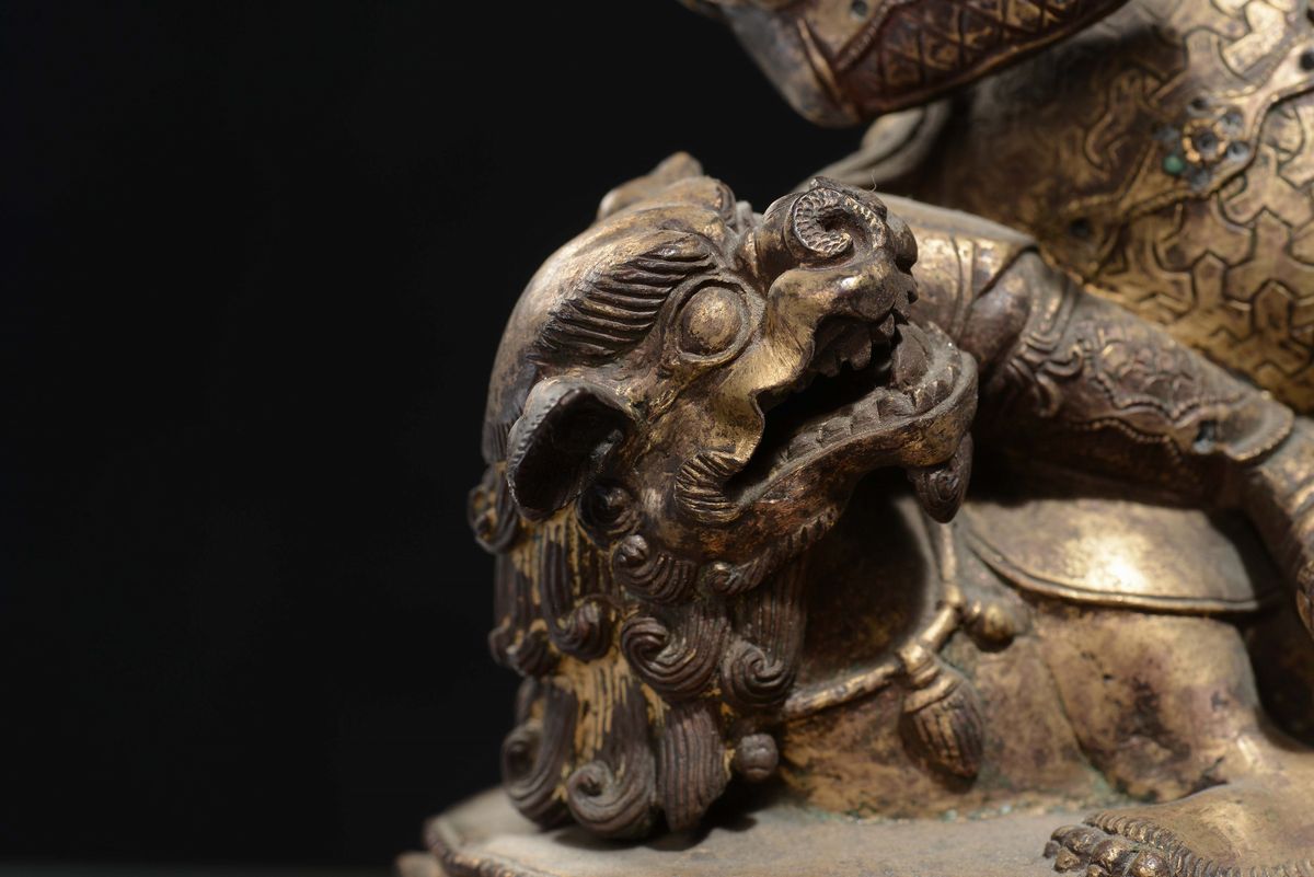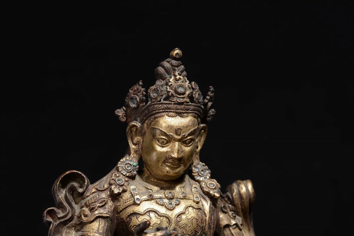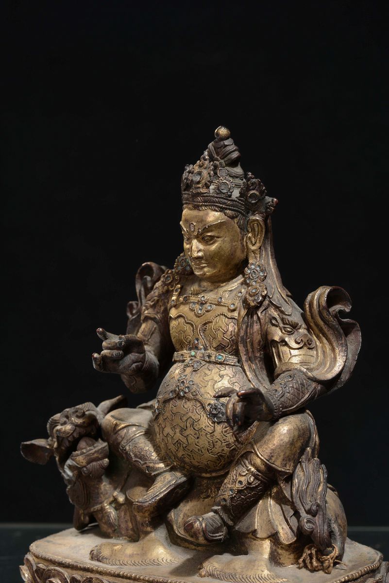 A beautiful gilt bronze “Vaisravana on Pho dog” sculpture, Tibet, 16th century
