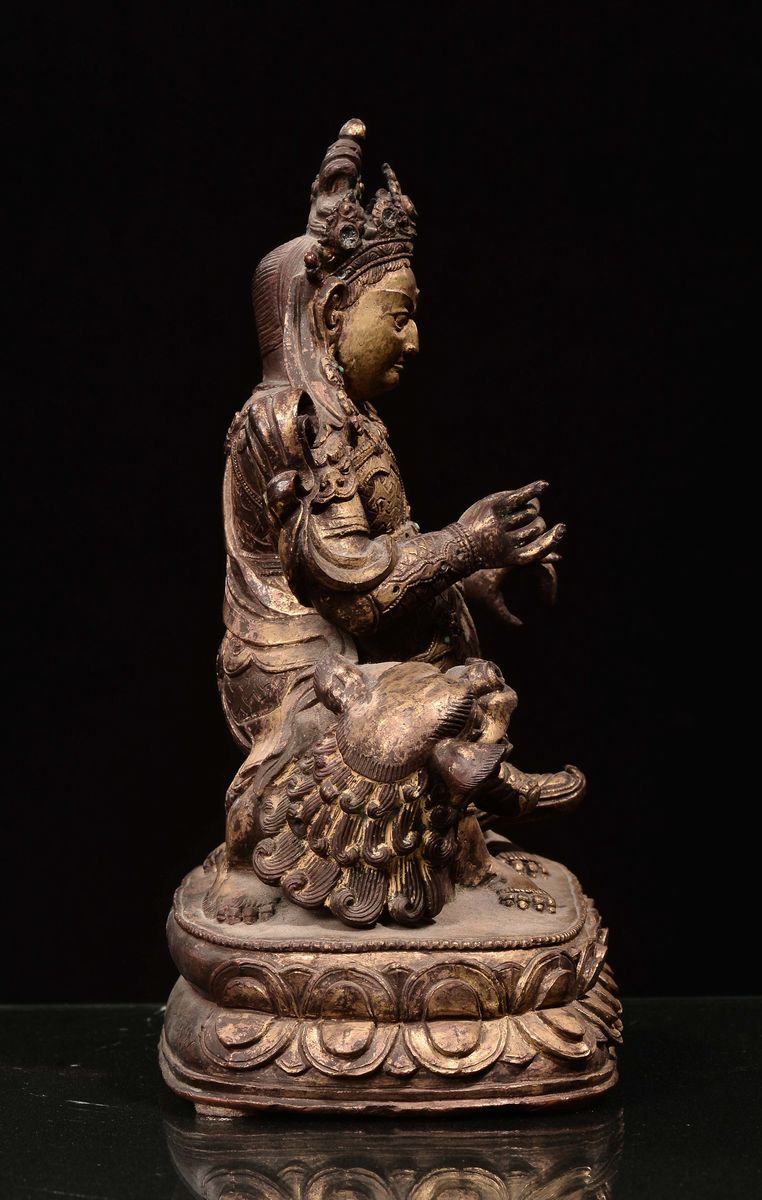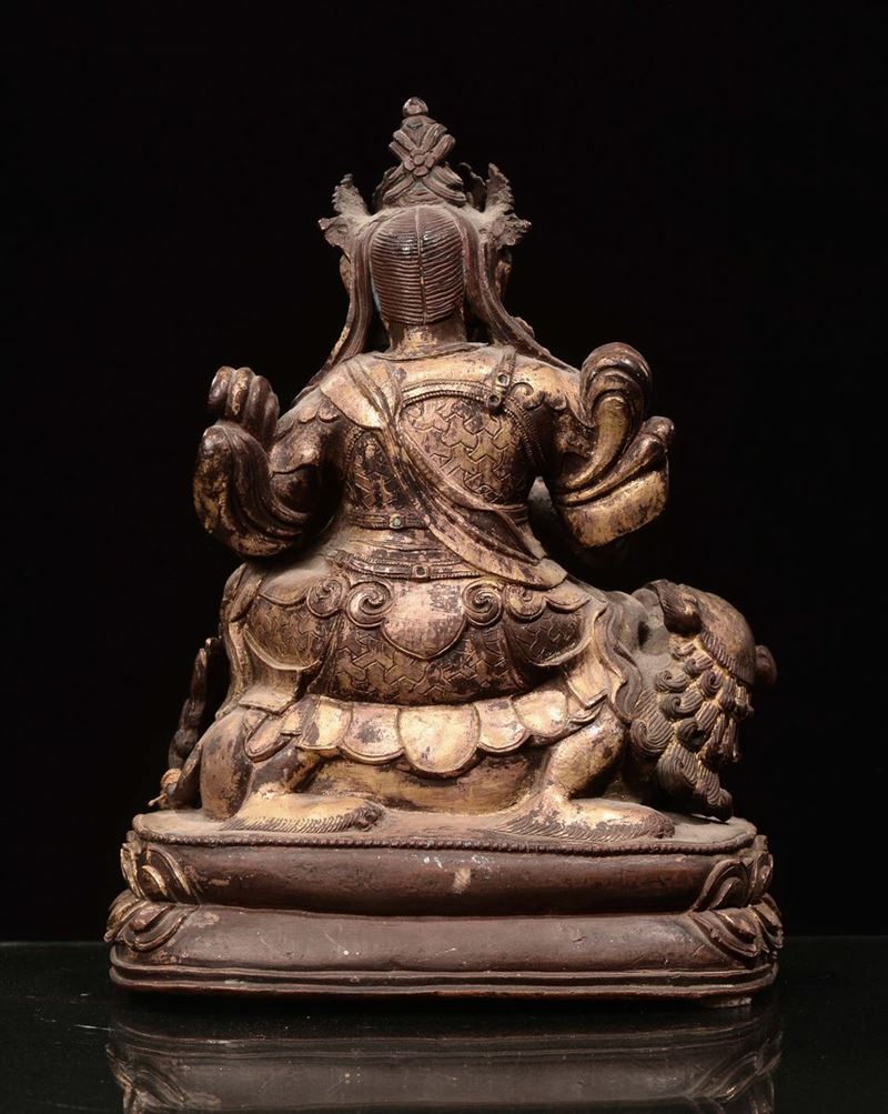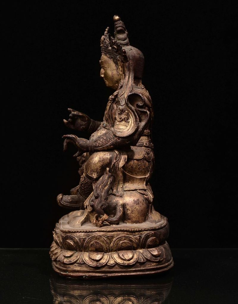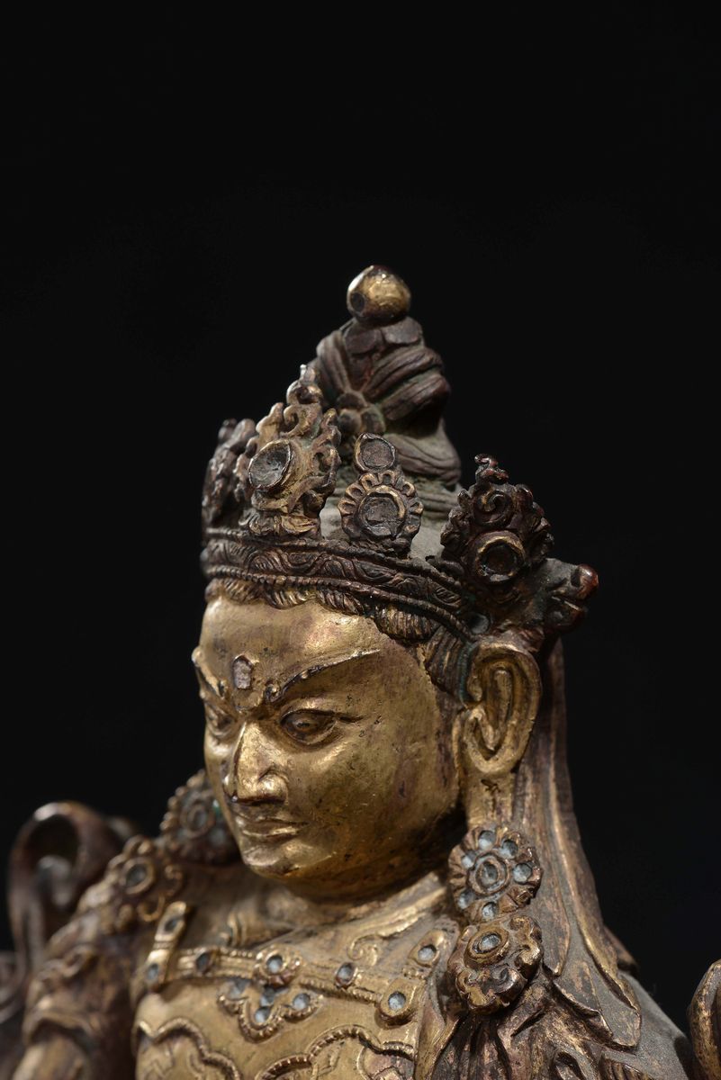 A beautiful gilt bronze “Vaisravana on Pho dog” sculpture, Tibet, 16th century