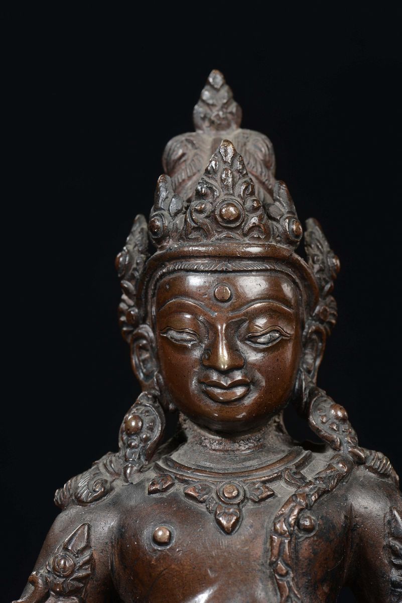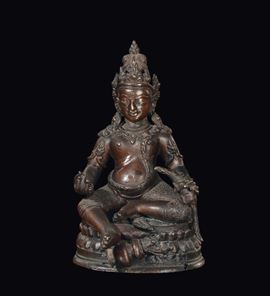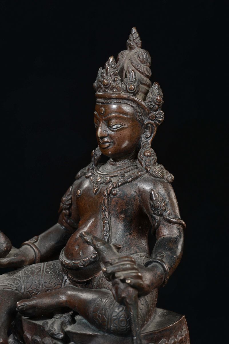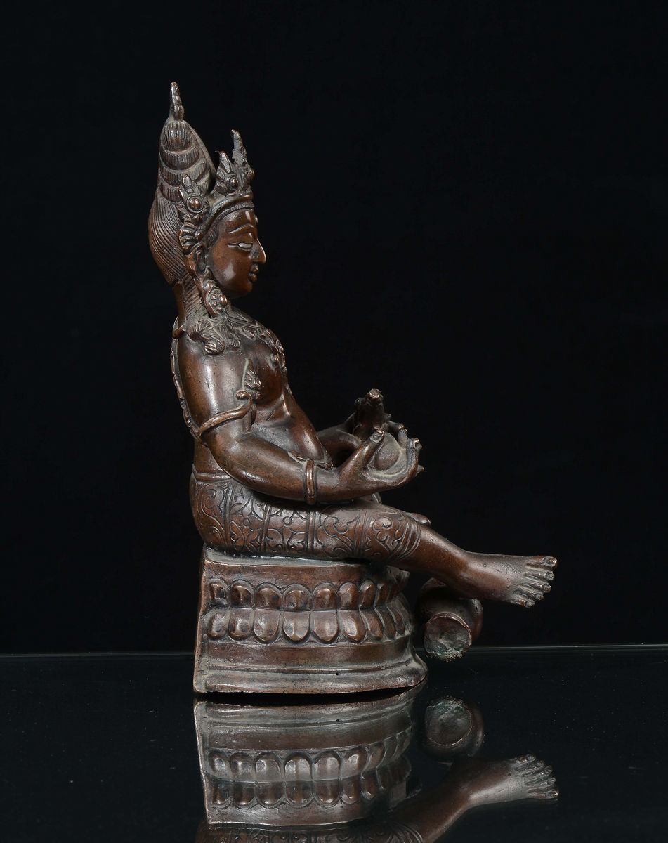A bronze “divinity with silver eyes” sculpture, Nepal, 17th century