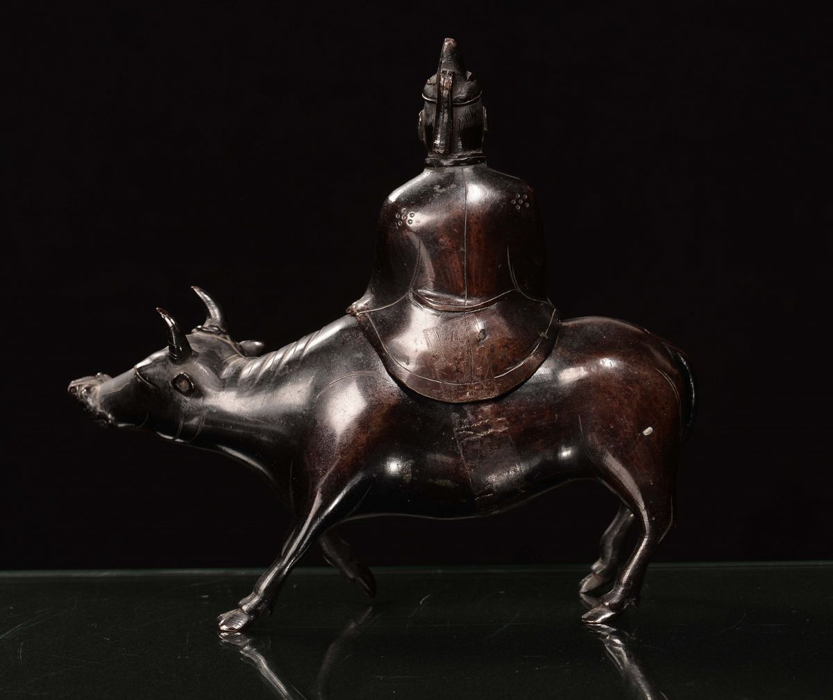 A bronze “wise man on buffalo” sculpture, China, Qing Dynasty, 18th century