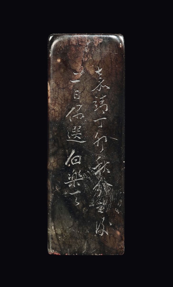 A brown soapstone seal with inscriptions, China, Qing Dynasty, 19th century