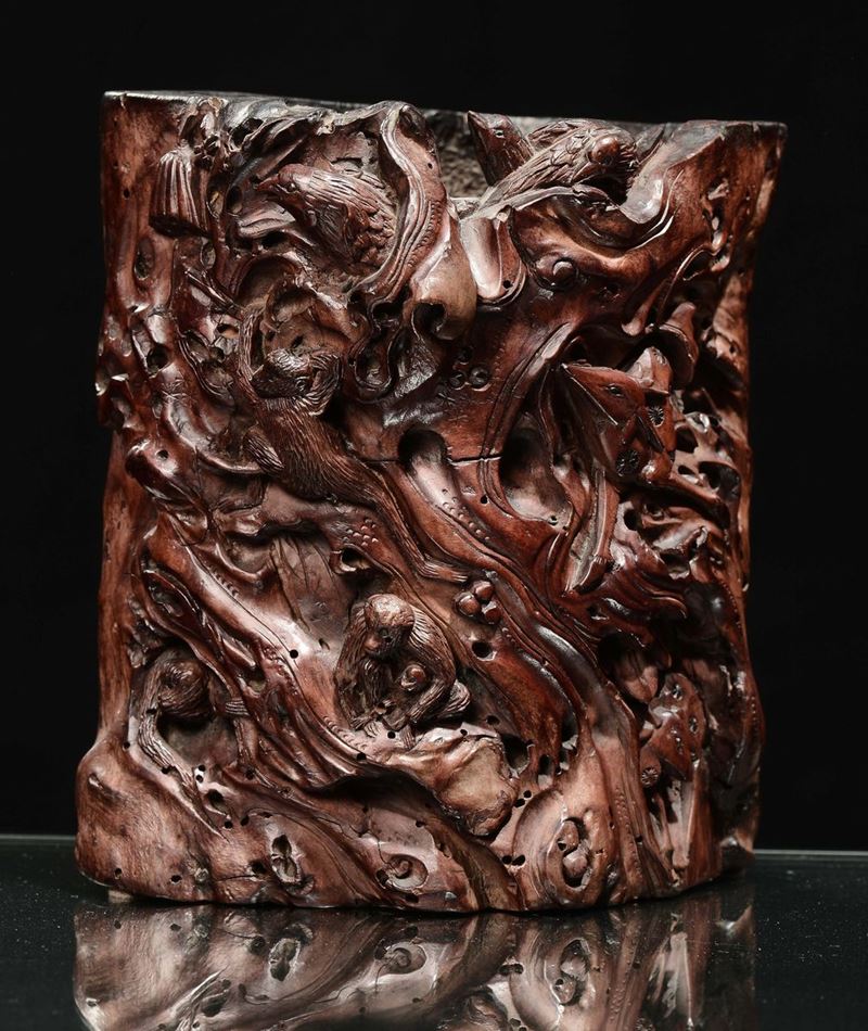 A carved bamboo brushpot, China, Qing Dynasty, Kangxi period (1662-1722)