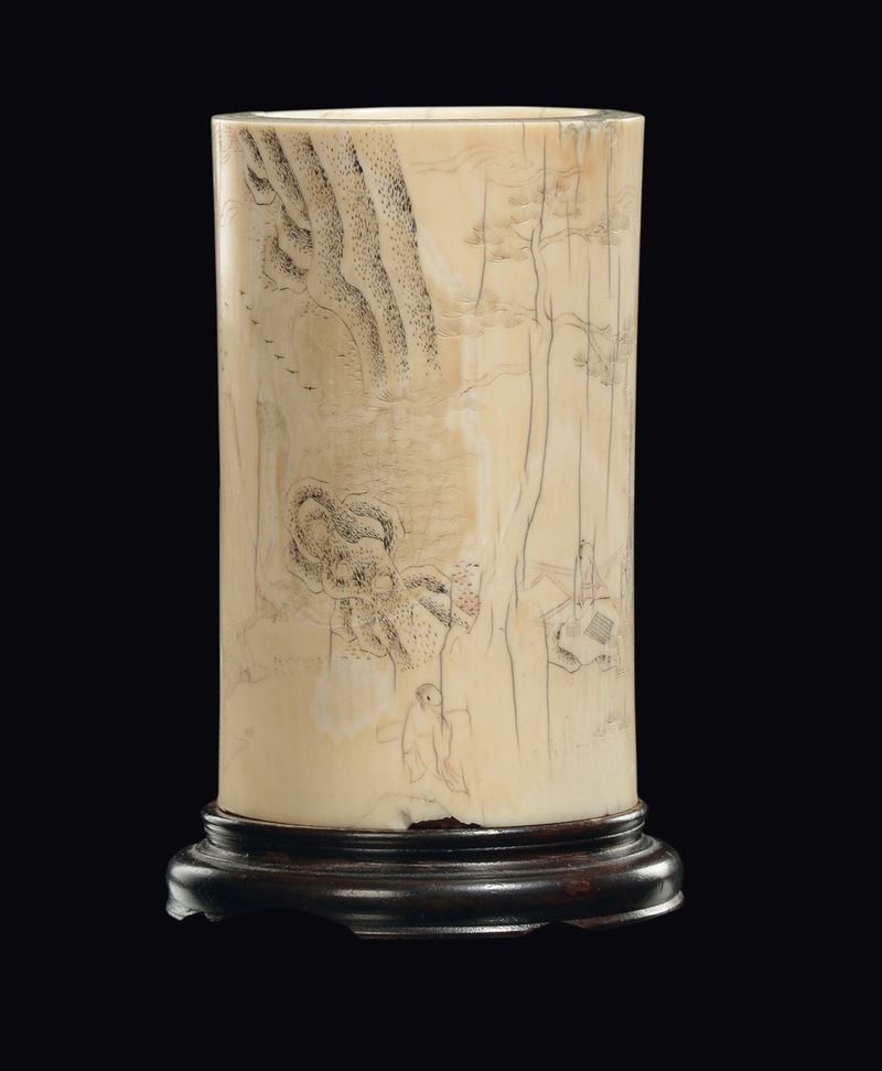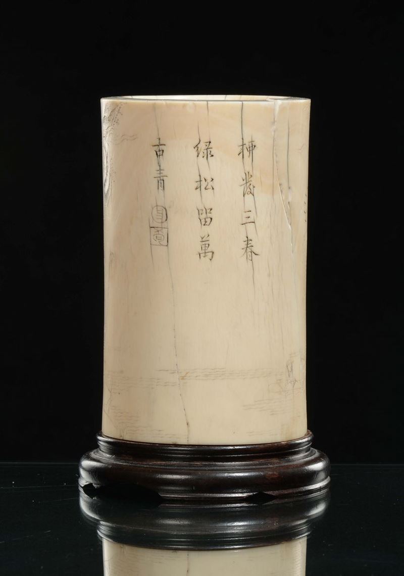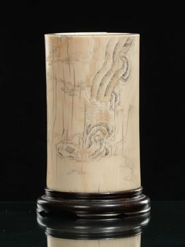 A carved ivory brushpot, China, Qing Dynasty, Qianlong period (1736-1796)