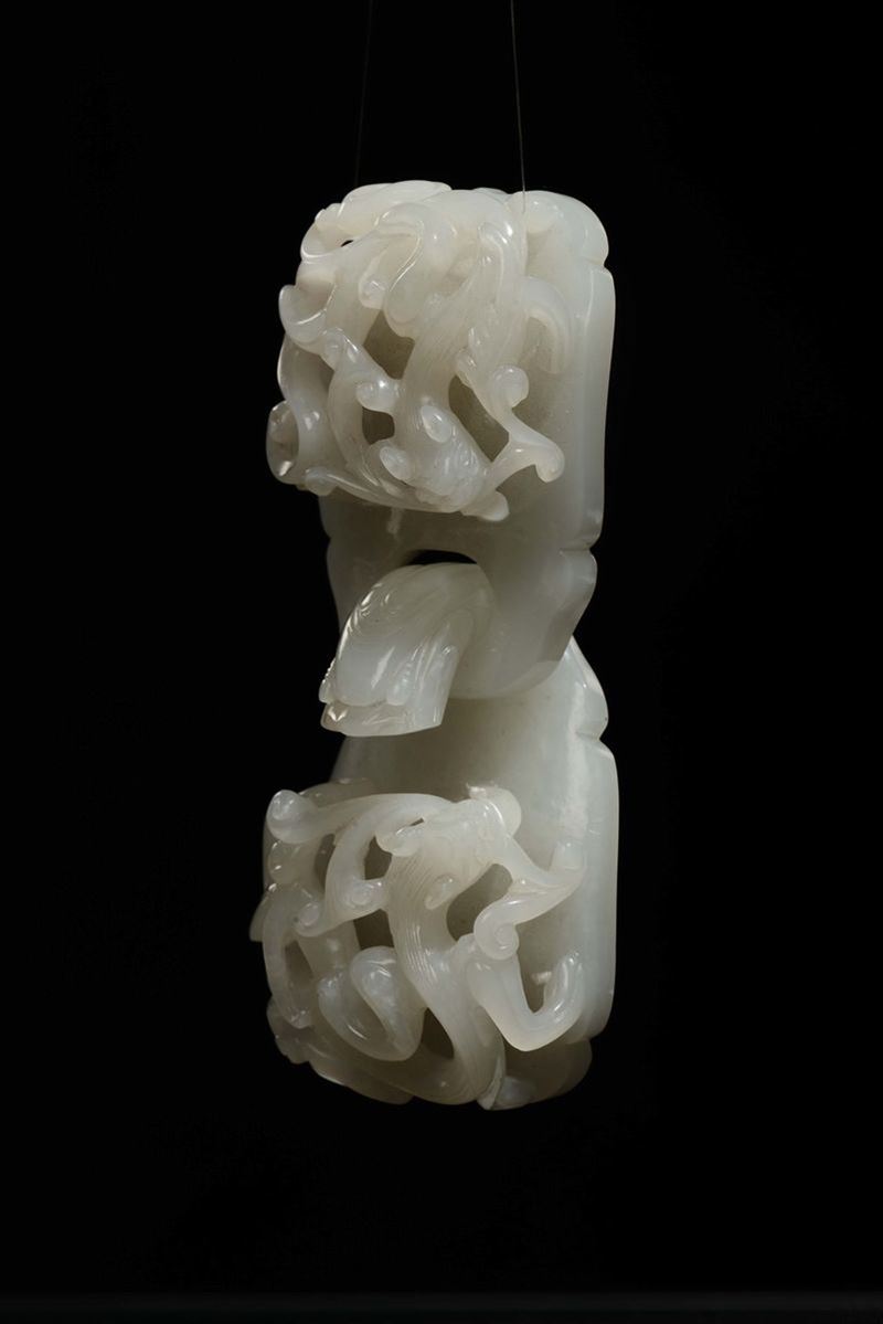 A carved white jade buckle, China, Qing Dynasty, Qianlong period (1736-1796)