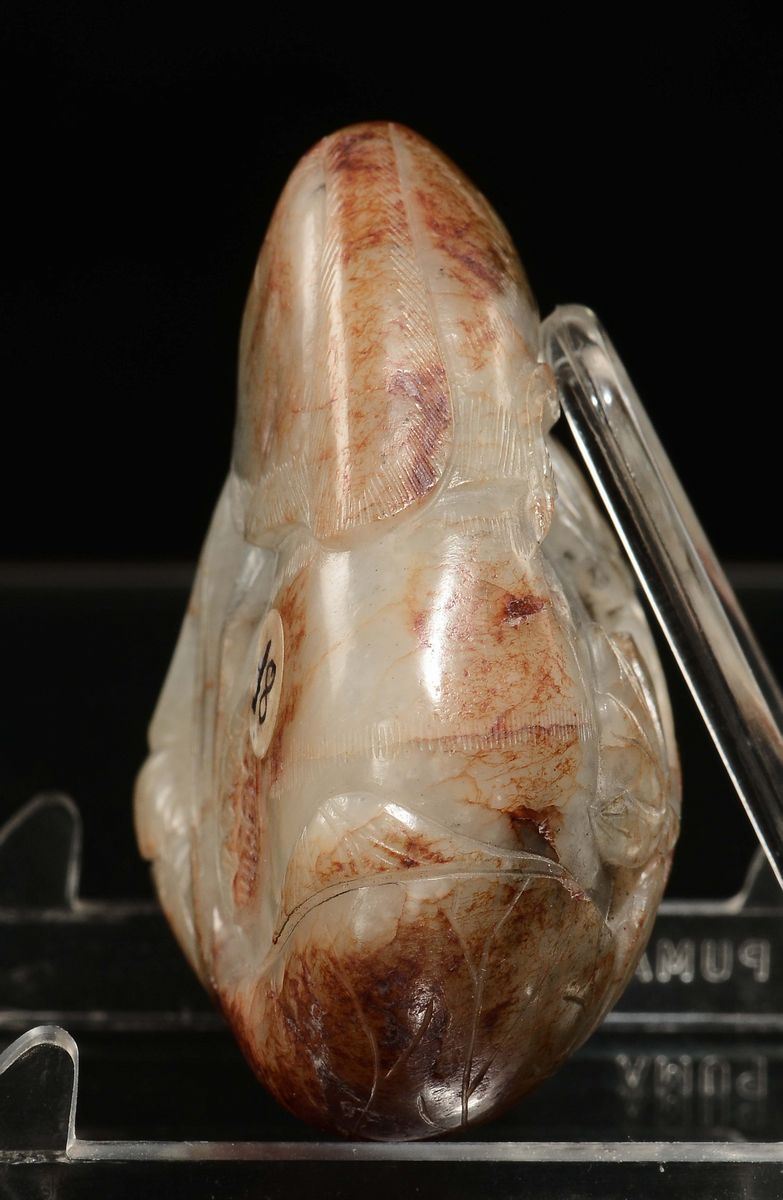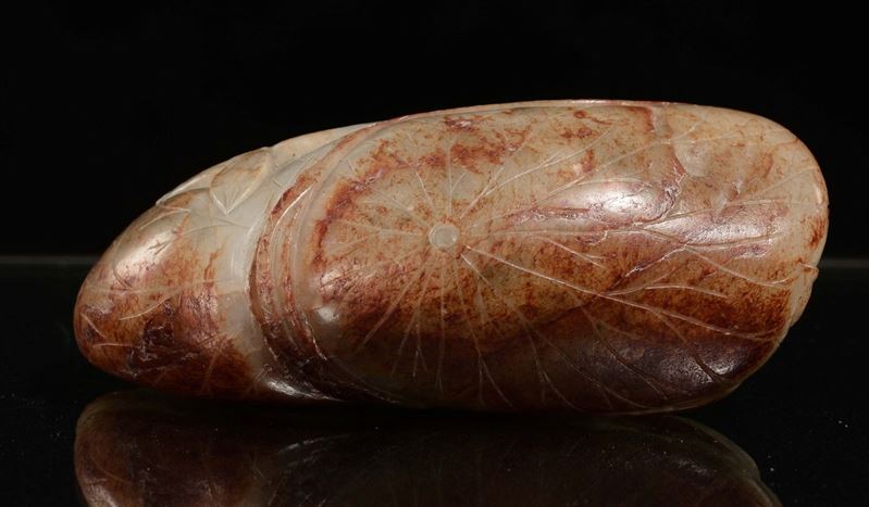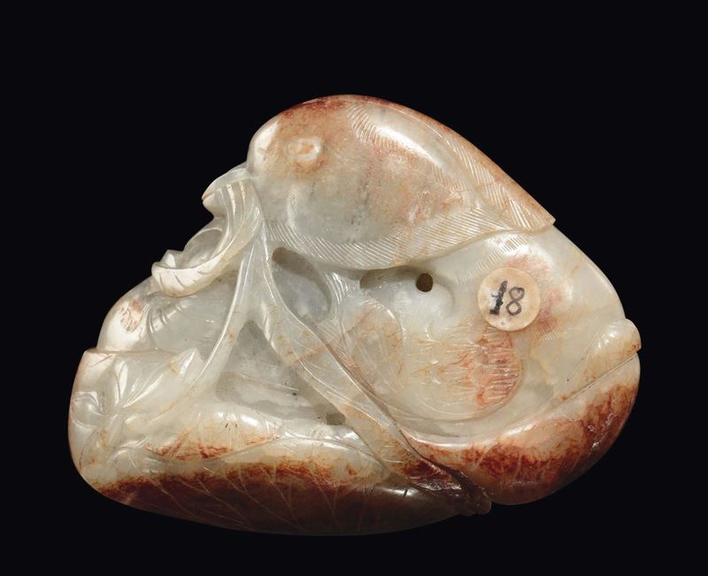 A Celadon jade and russet “duck” group, China, Qing Dynasty, Qianlong period (1736-1796)