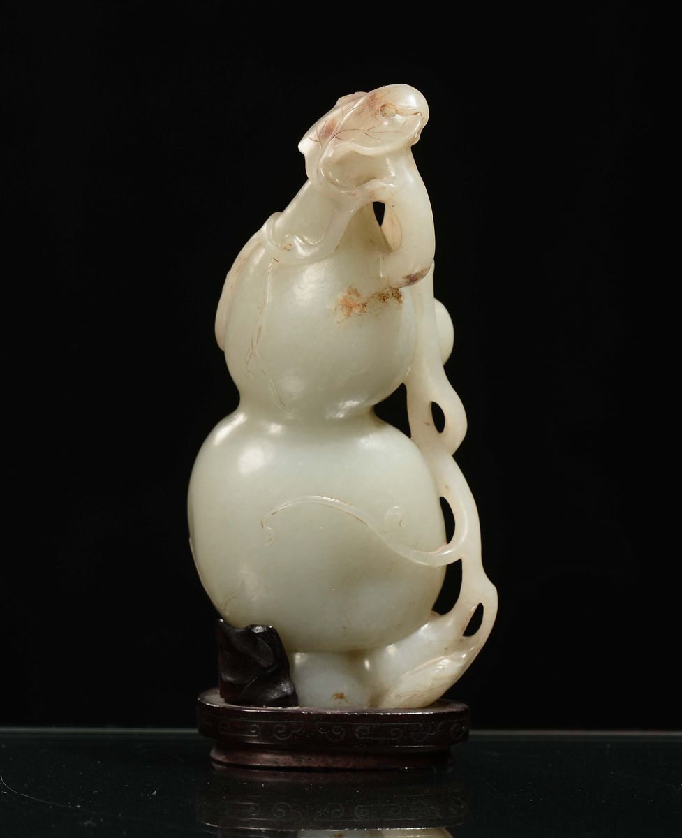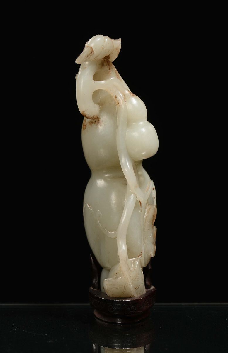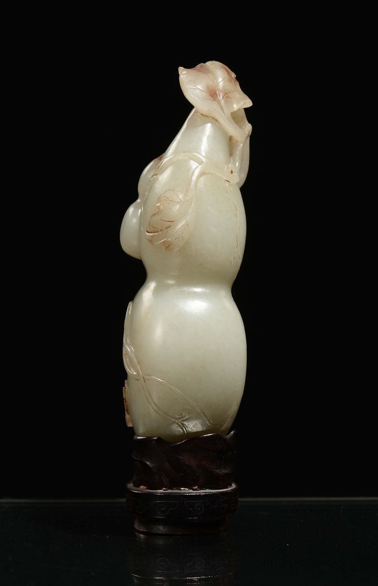 A Celadon jade double-pumpkin sculpture, China, Ming Dynasty, 17th century