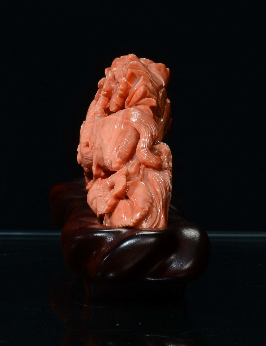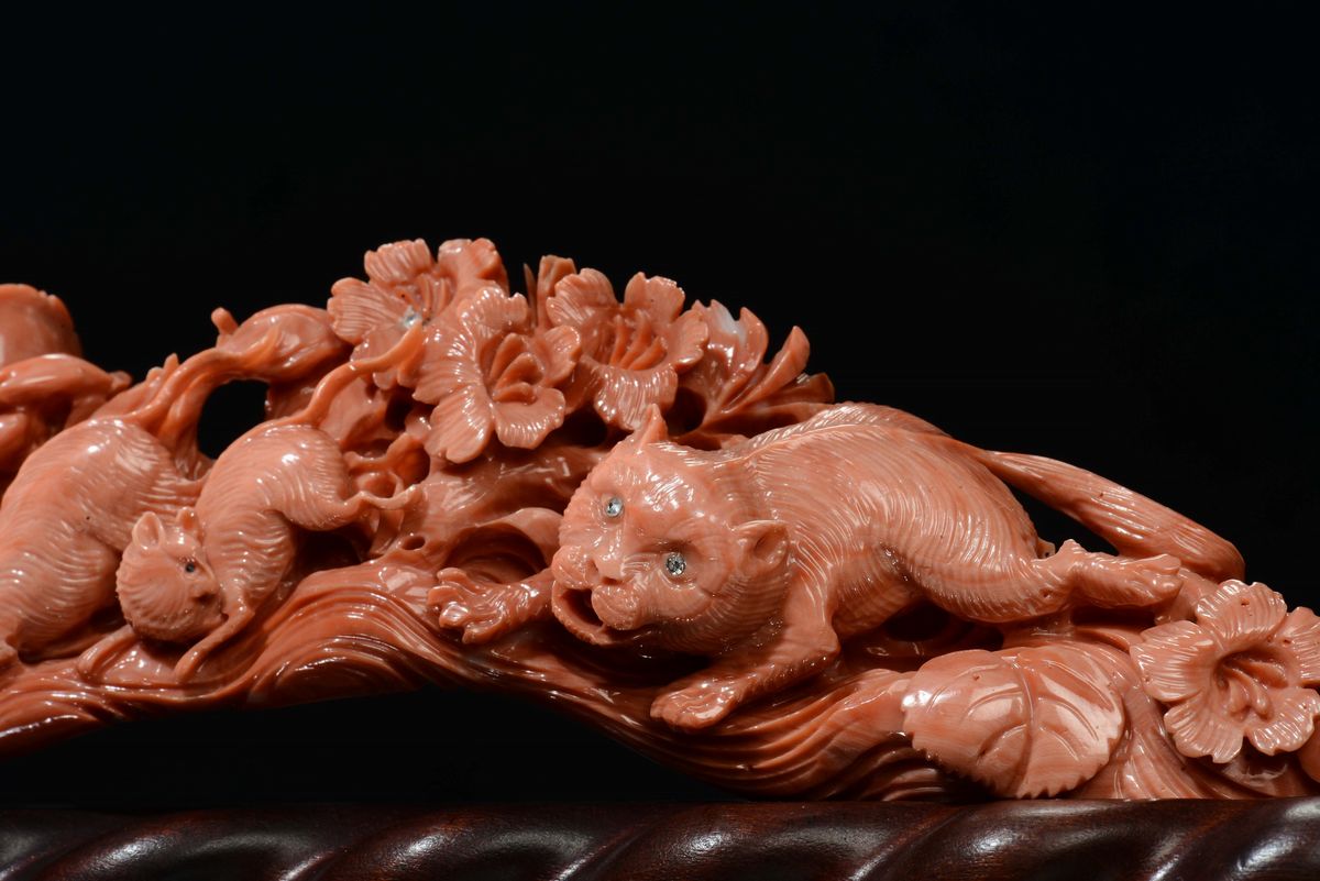 A coral “cat chasing mice” group , China, early 20th century