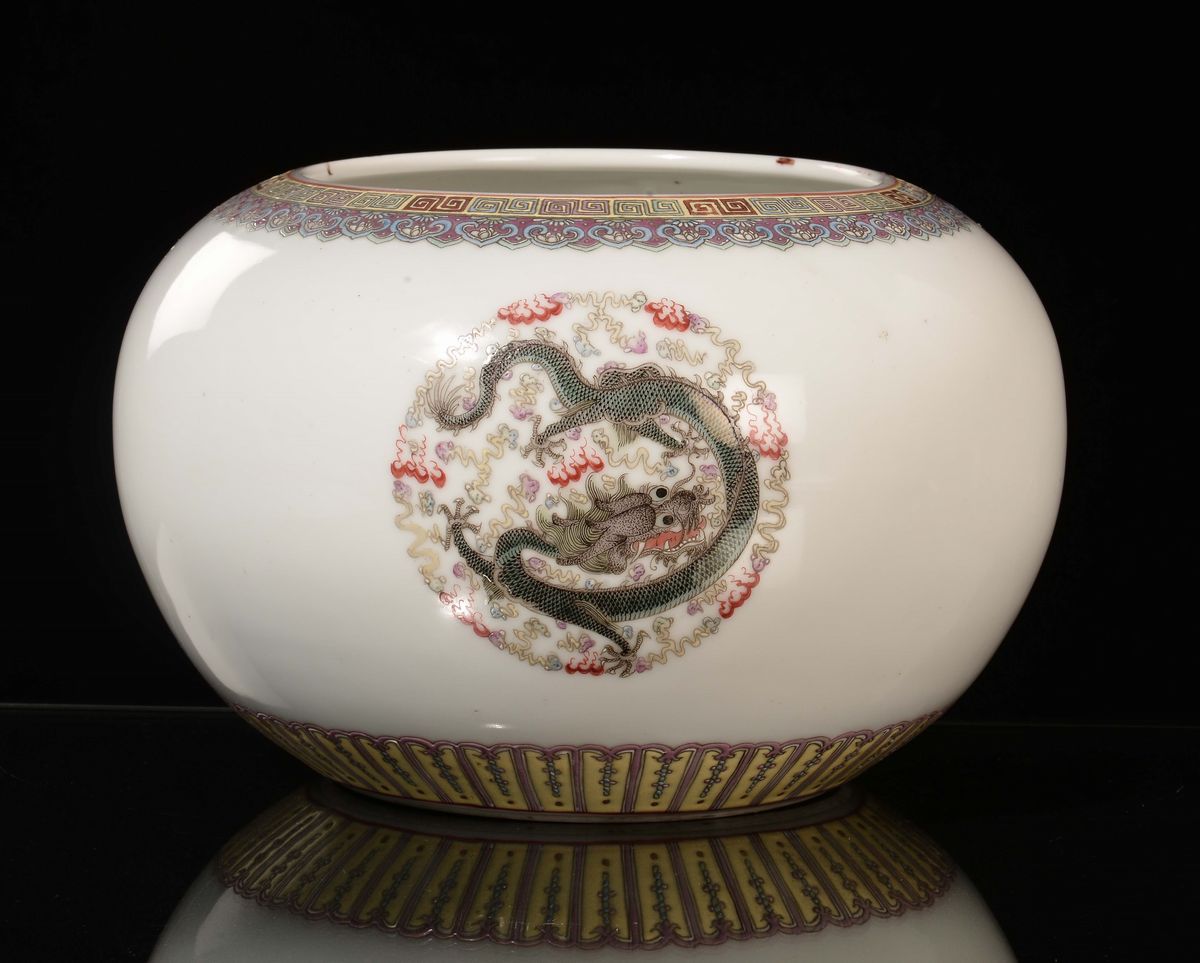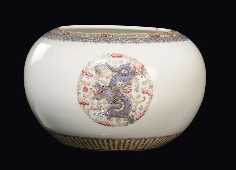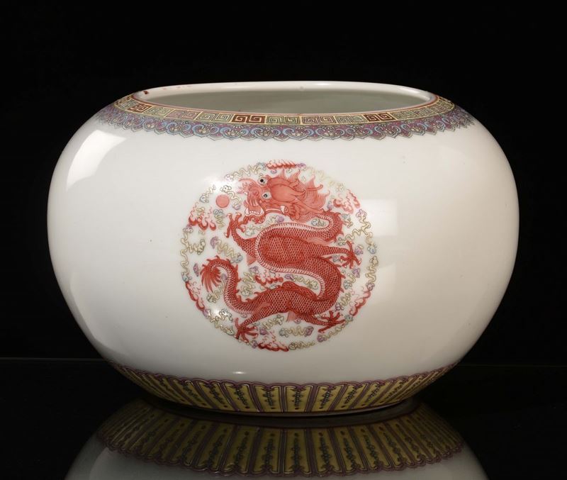 A Famille Rose porcelain cachepot with three dragons, China, Republic, 20th century