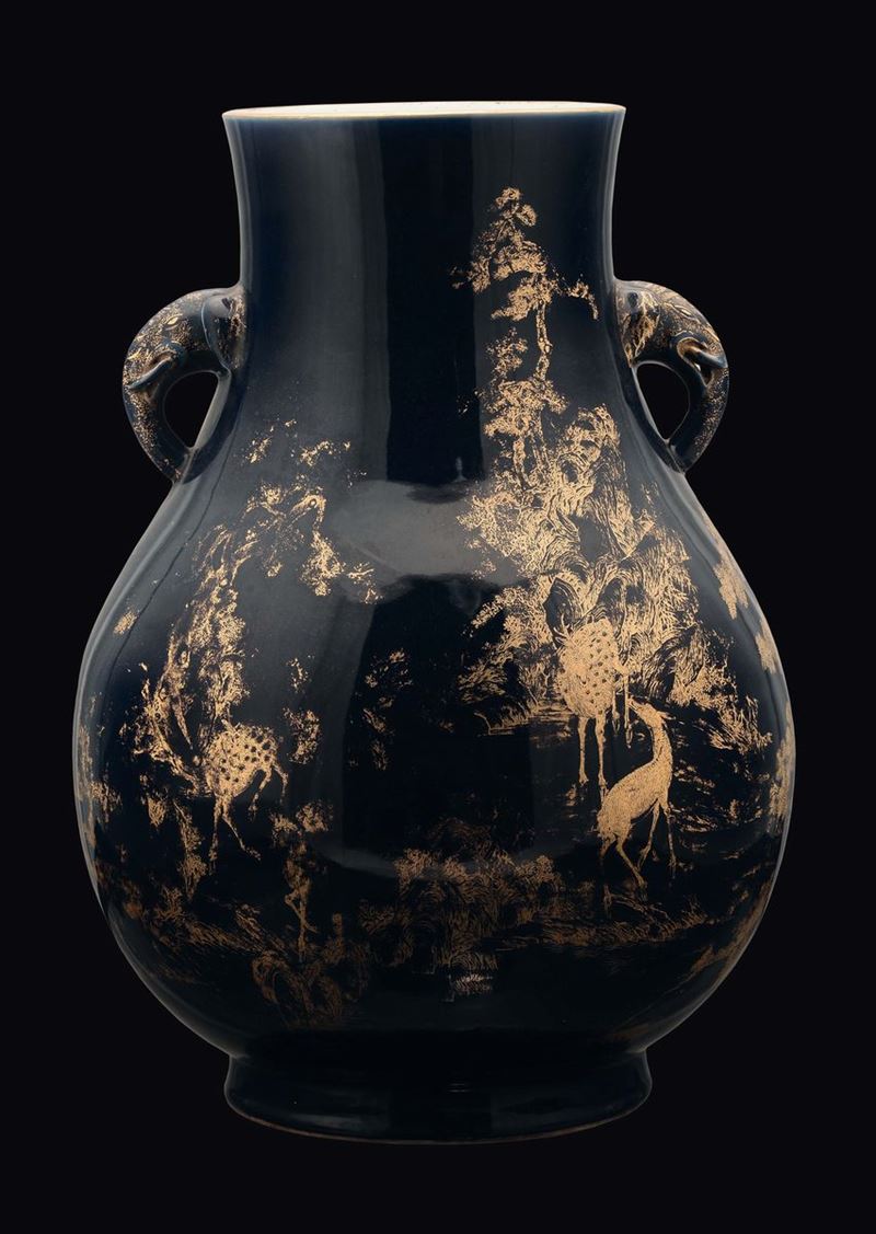 A fine blue porcelain vase with gilt deers decoration, China, Qing Dynasty, Guangxu period (1875-1908)