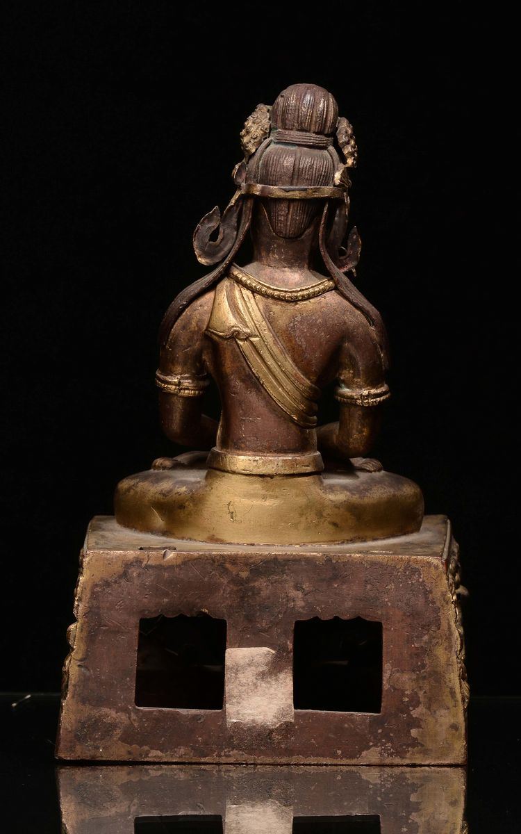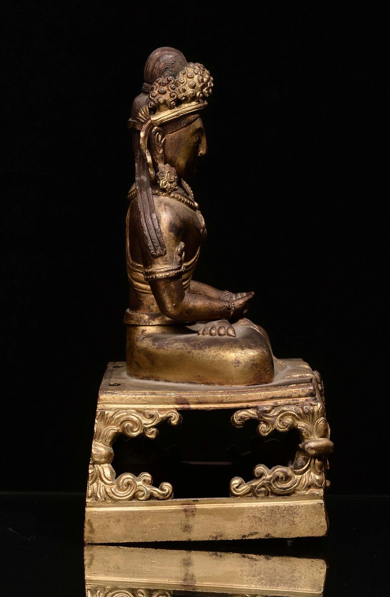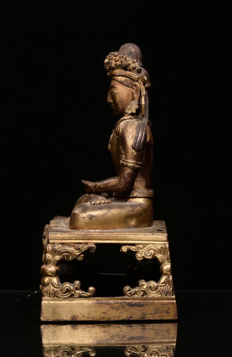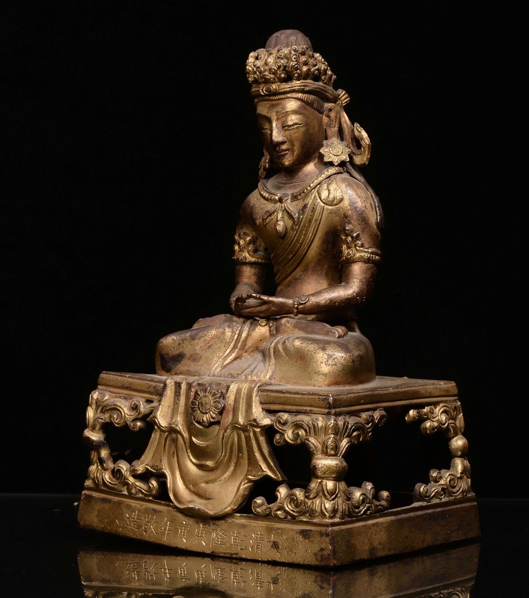 A gilt bronze Amitaya on throne, China, Qing Dynasty, Qianlong mark and of the period (1736-1796)