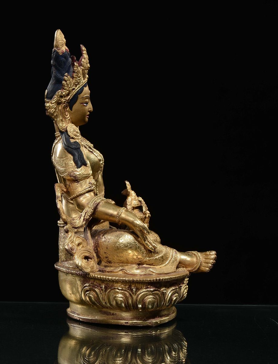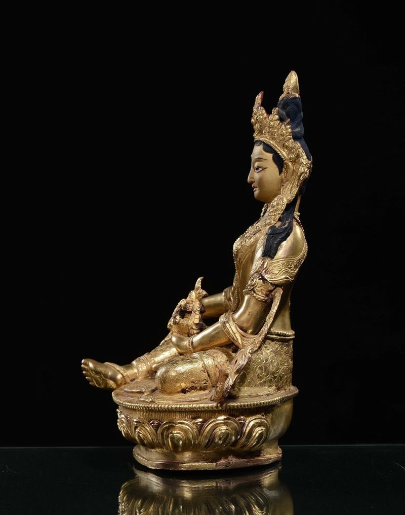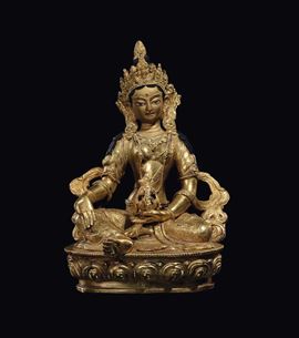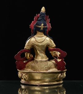 A gilt bronze Amitaya sitting on a lotus flower, Tibet, 20th century