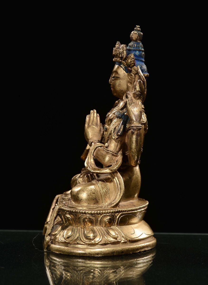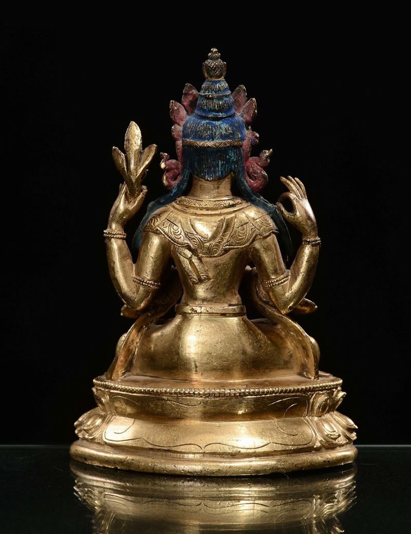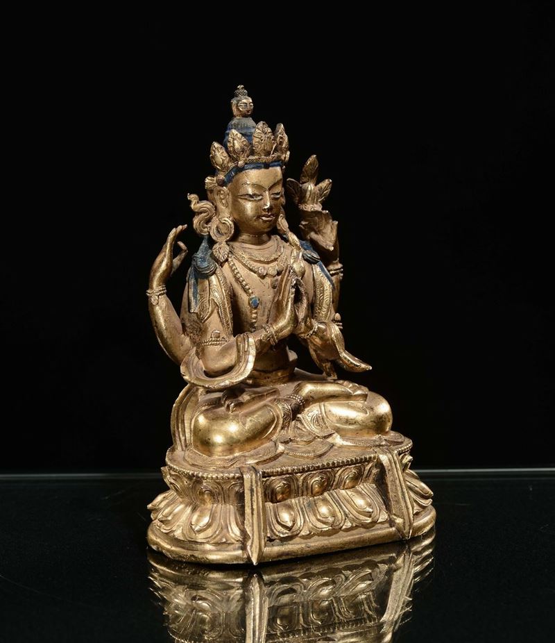 A gilt bronze Sadacasharilokeshvara sculpture, Tibet, 17th century