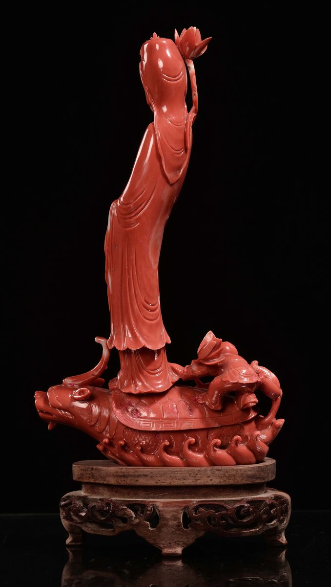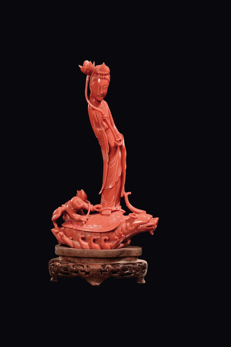 A Guanyin with boy on turtle, China, Qing Dynasty, late 19th century