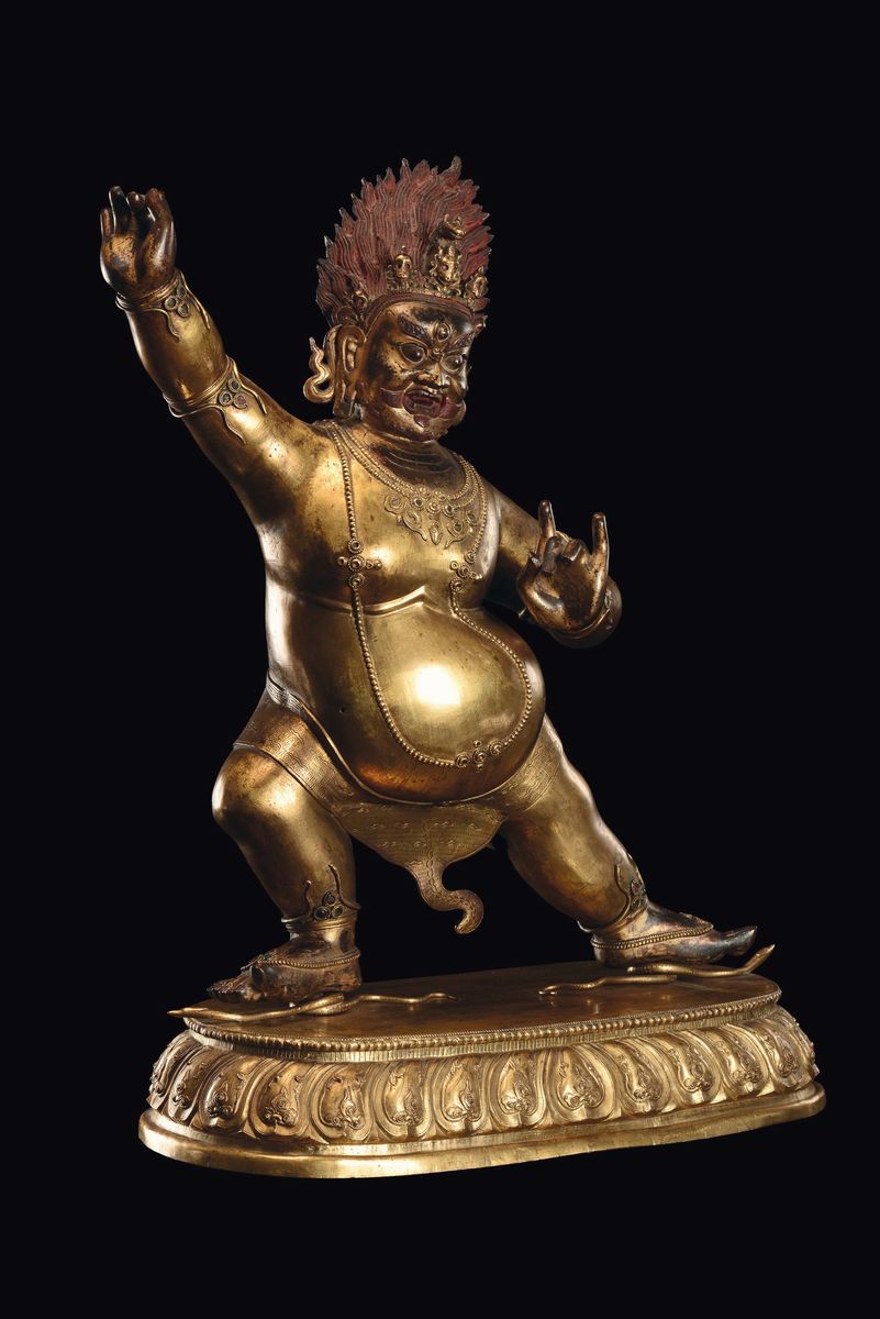 A large and important gilt bronze and copper Vajrapani, China, Qing Dynasty, 18th century