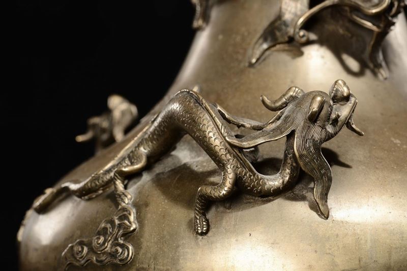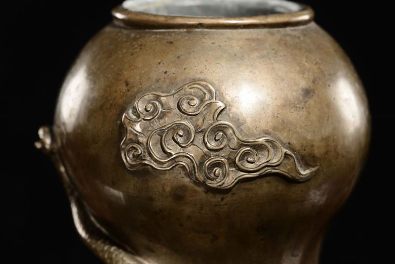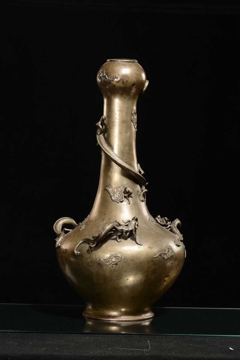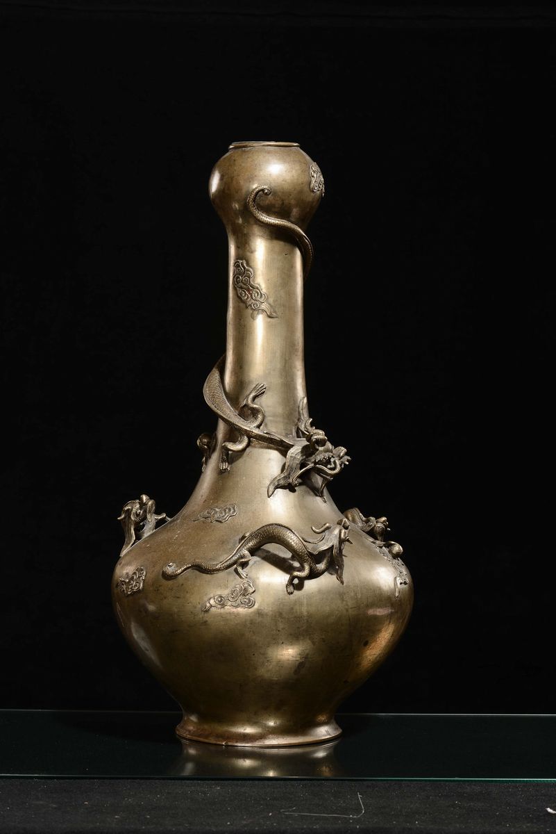 A large bronze vase with relief dragons applications, China, Qing Dynasty, Kangxi period (1662-1722)