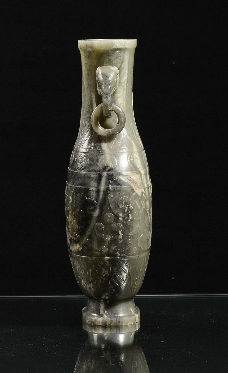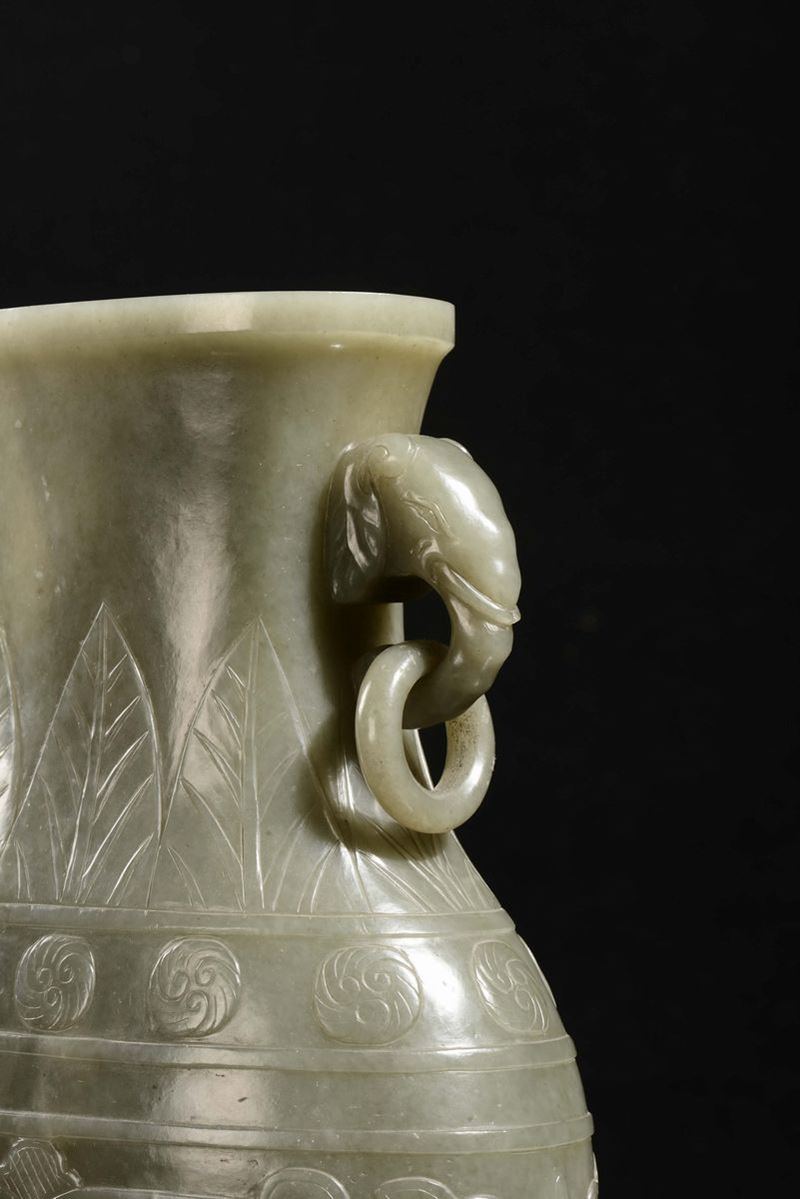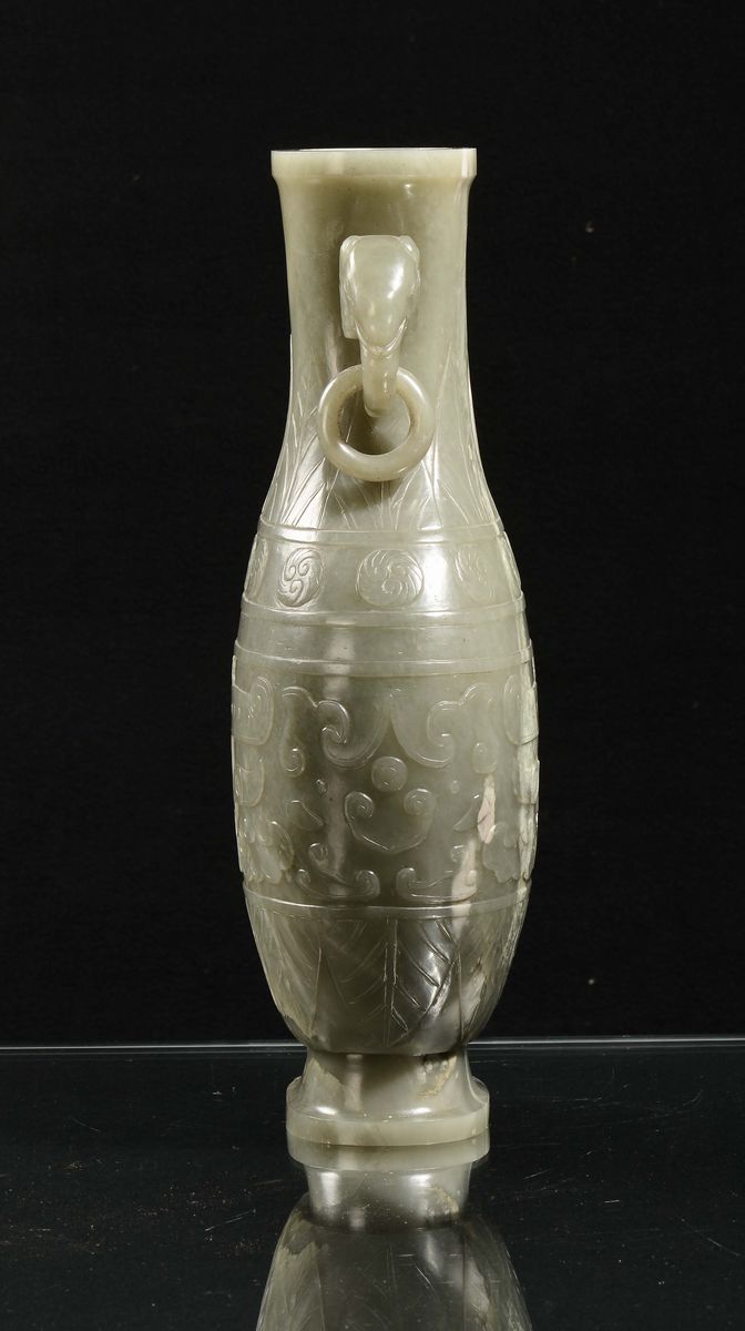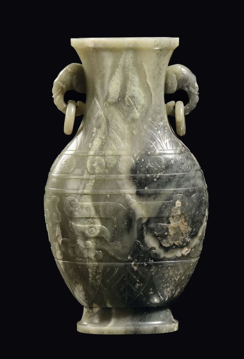 A large Celadon jade vase with archaic decoration, China, Qing Dynasty, Jiaqing Period (1736-1795)