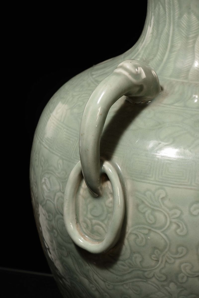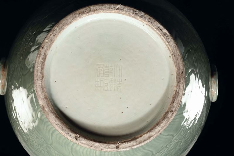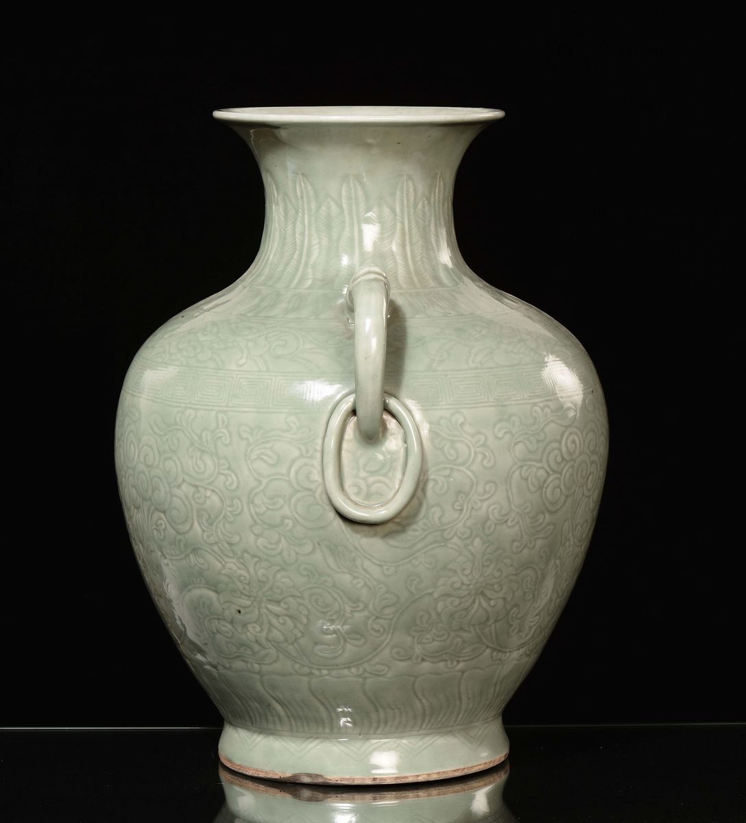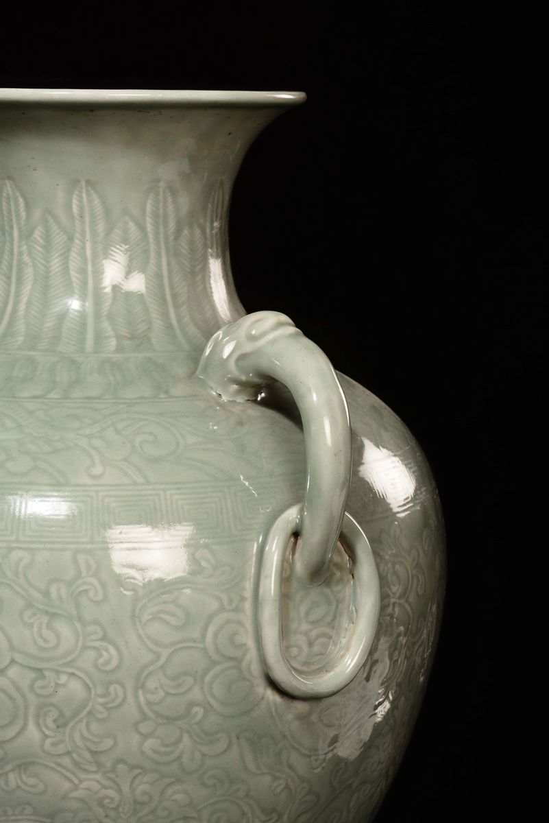 A large Celadon porcelain two-handled vase with archaic decoration, China, Qing Dynasty, 19th century
