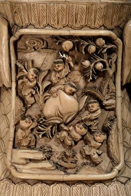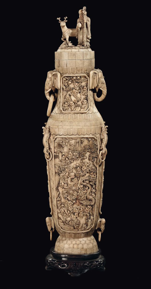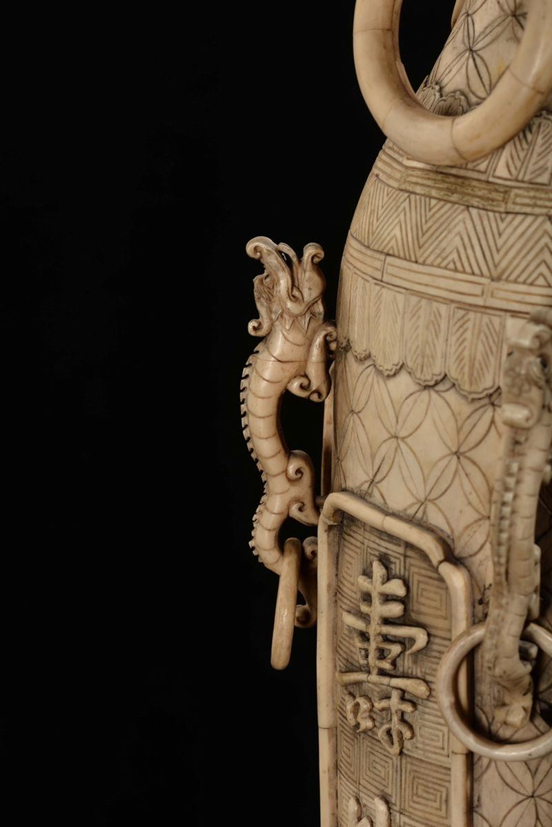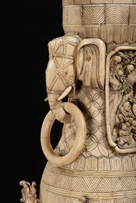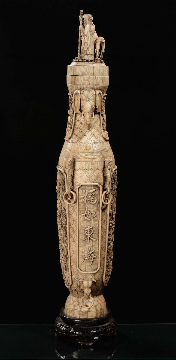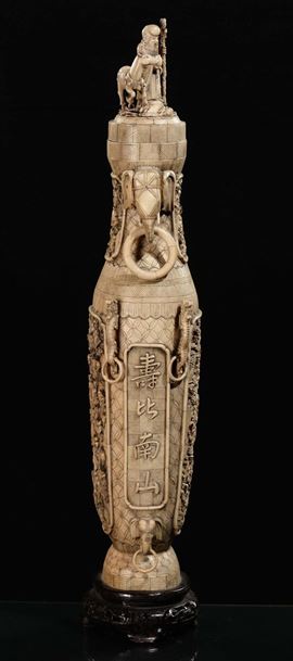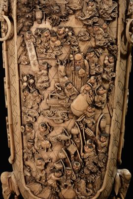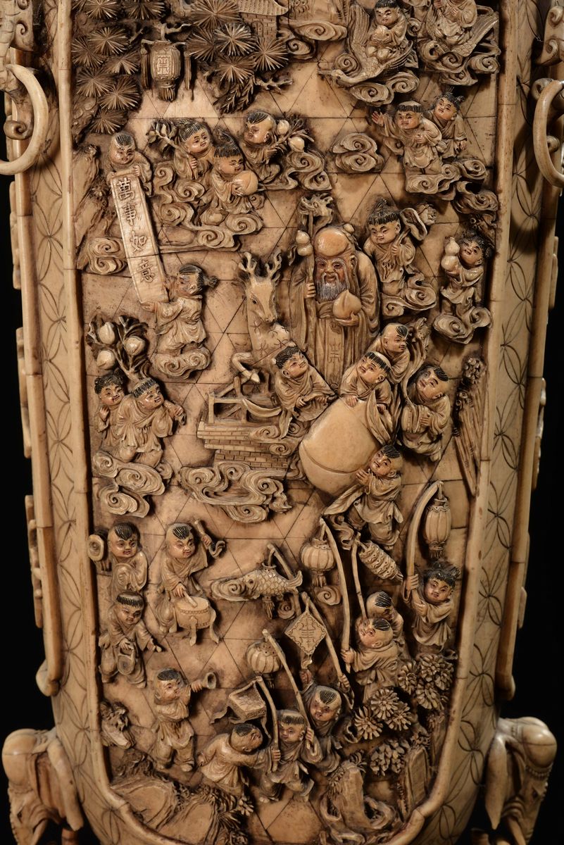 A large ivory and bone engraved vase with scenes of court life, China, Qing Dynasty, 19th century