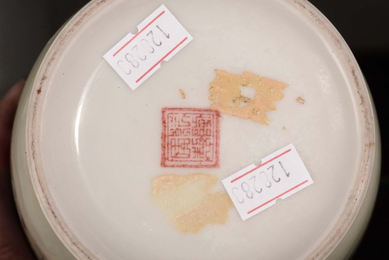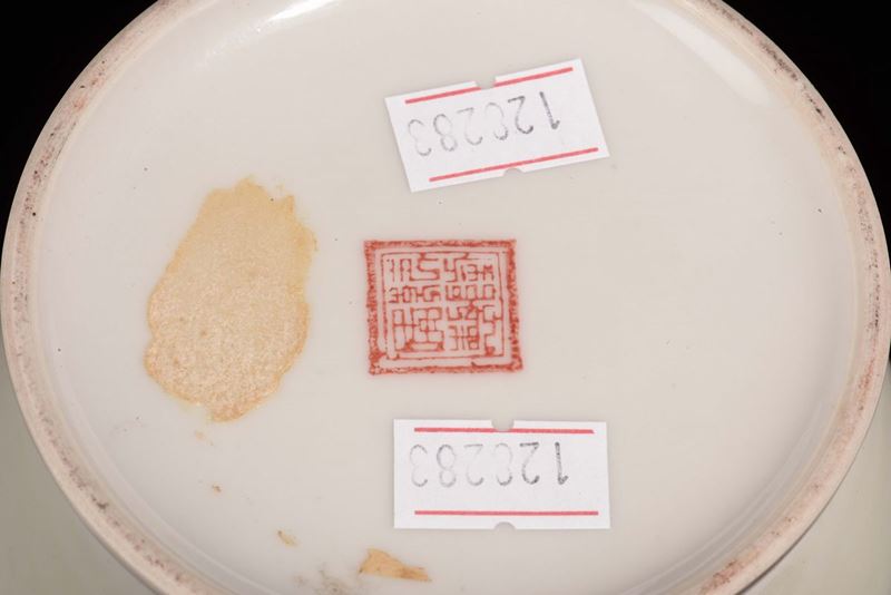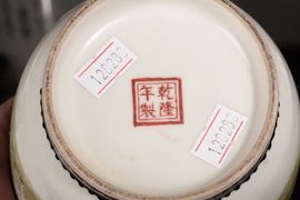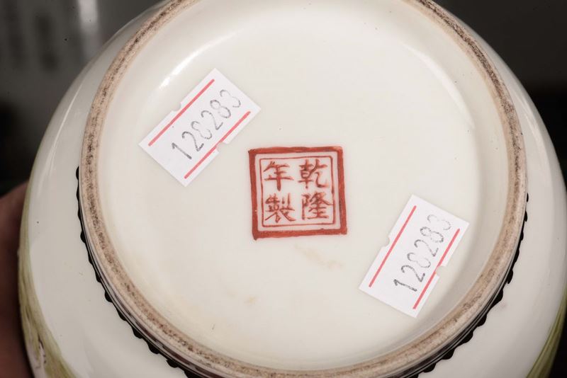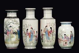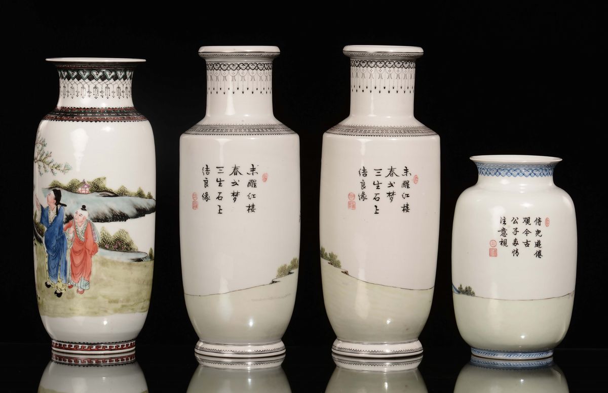 A lot of four polychrome porcelain vases with figures and inscriptions, China, Republic, 20th century
