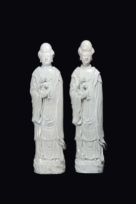 A pair of Blanc de Chine porcelain Guanyin, China, Qing Dynasty, 18th century