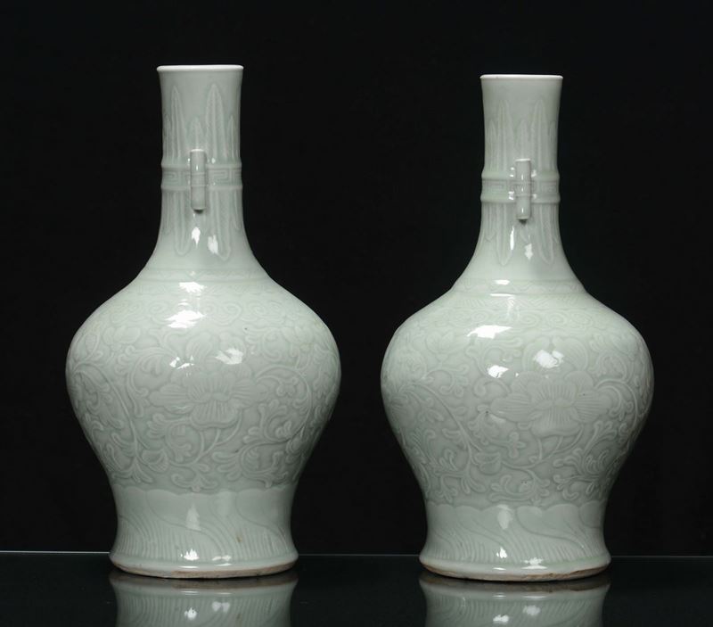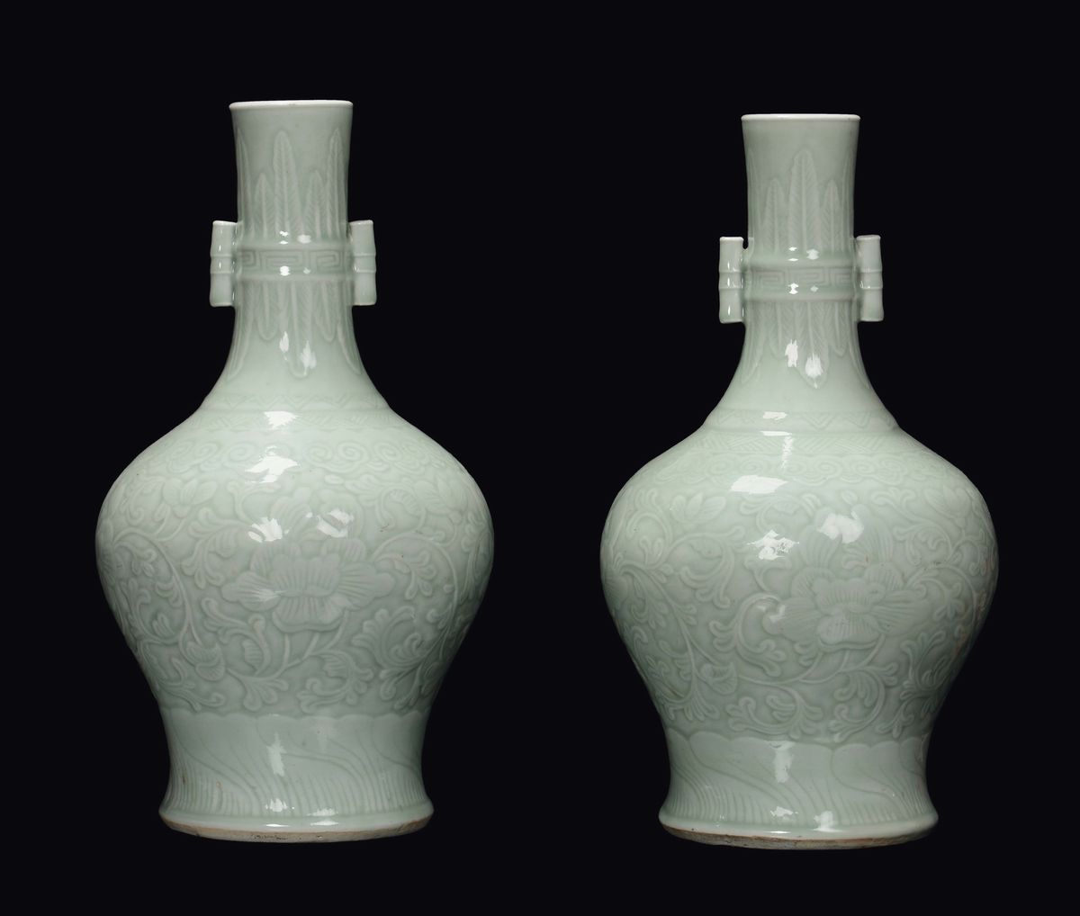 A pair of Celadon porcelain vases, China, Qing Dynasty, 19th century