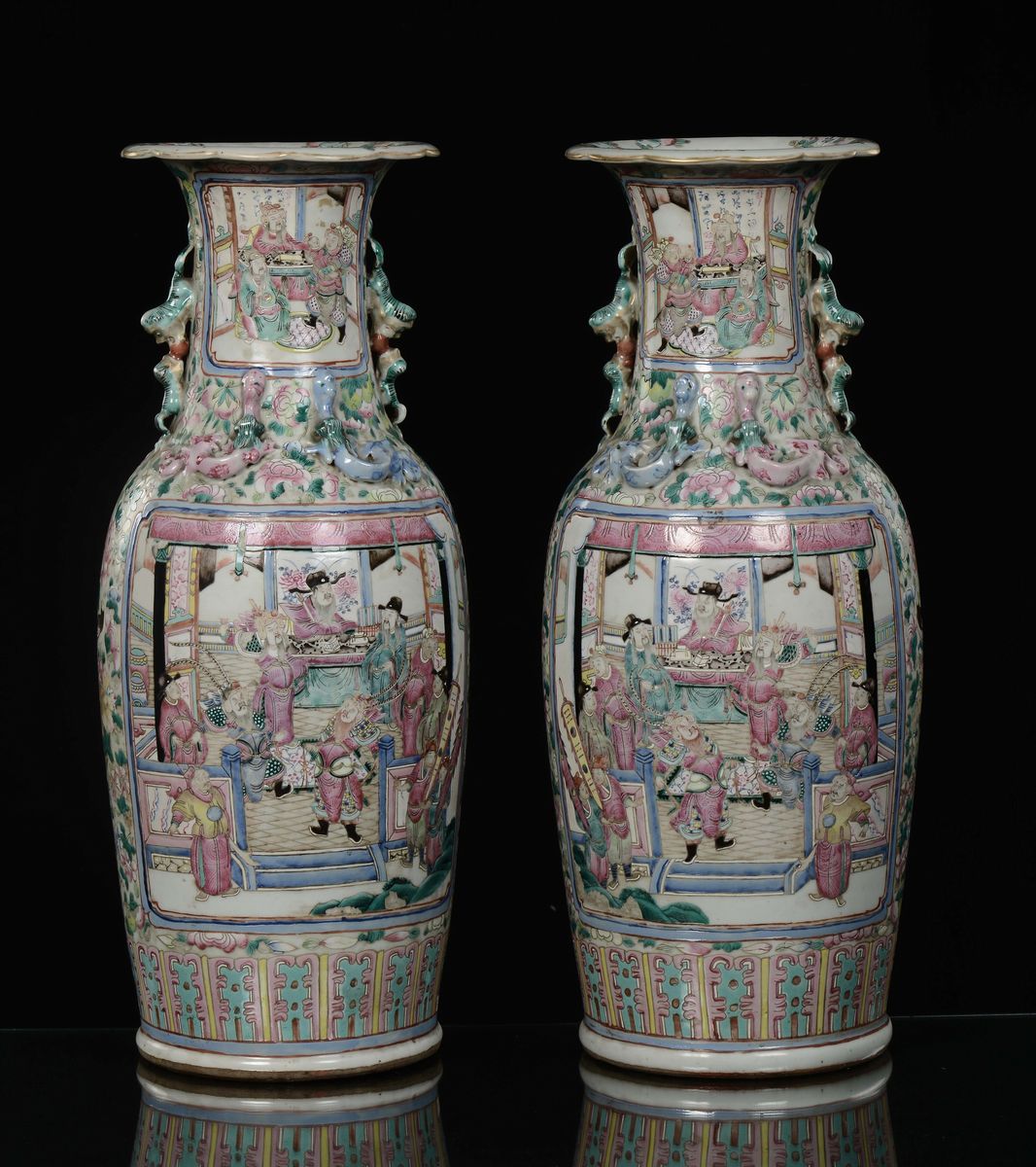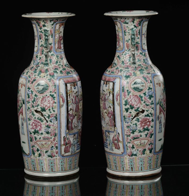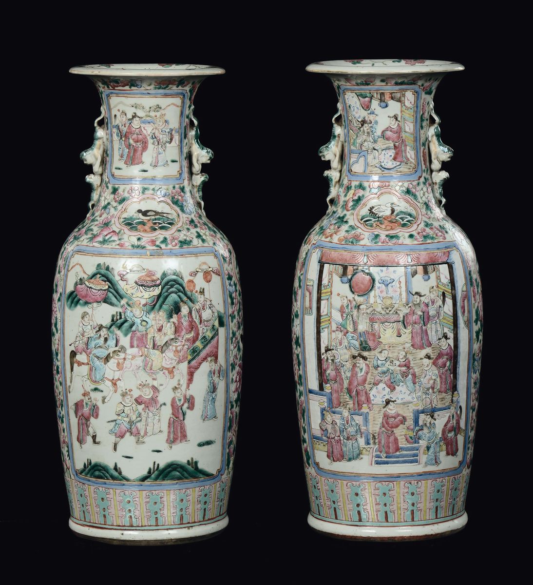 A pair of Famille-Rose porcelain vases with battle scenes, China, Qing Dynasty, 19th century