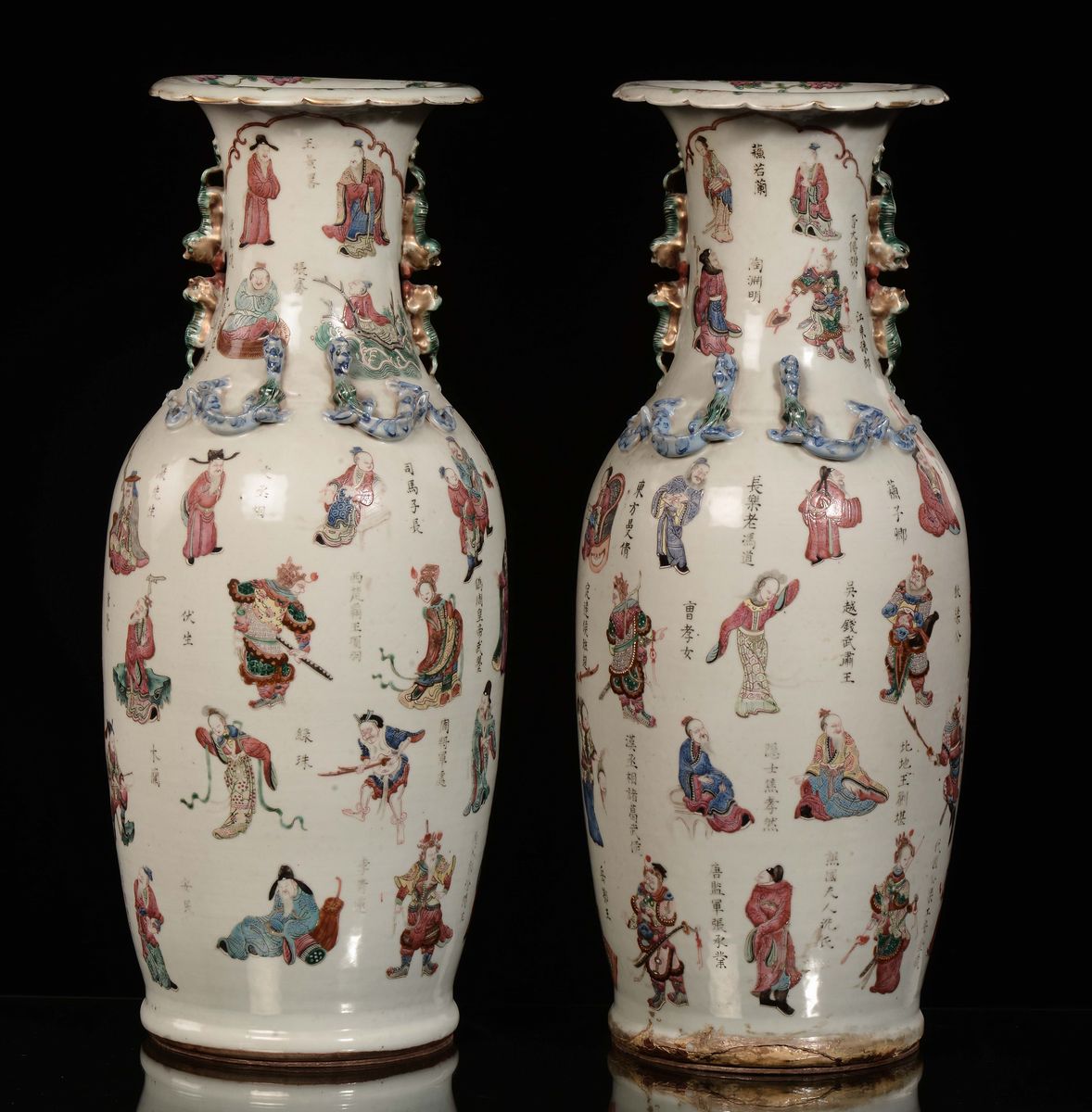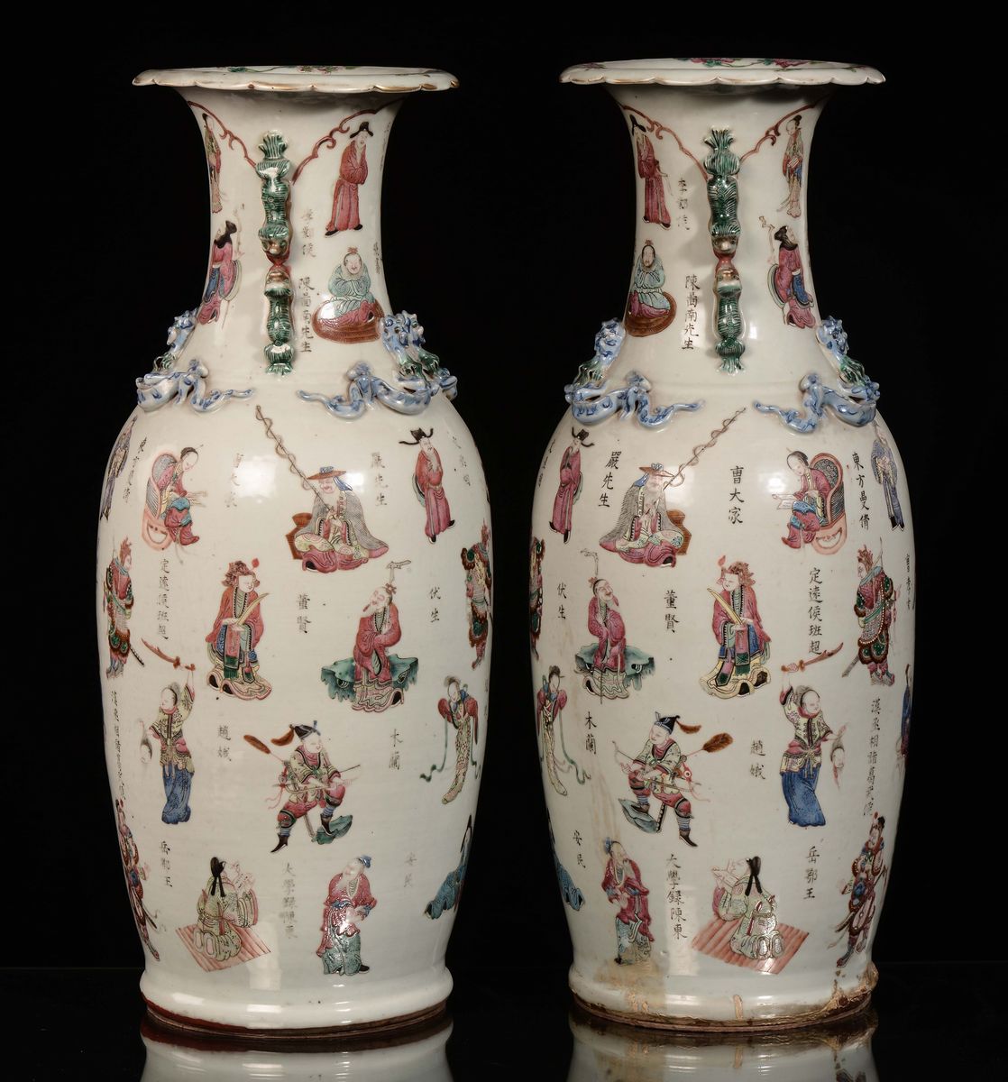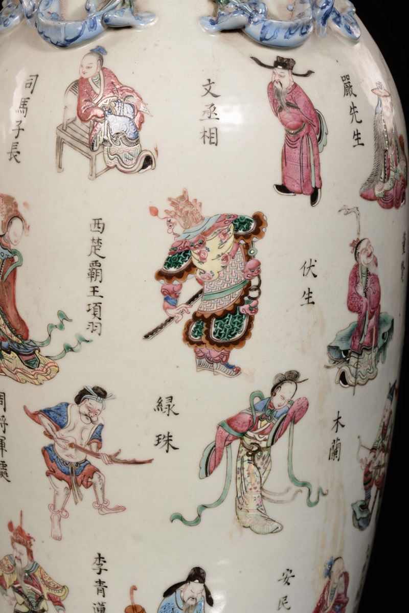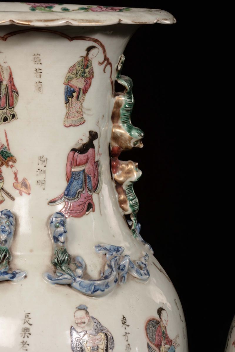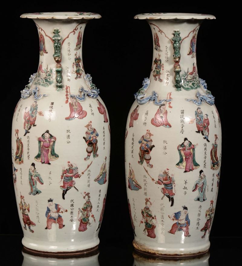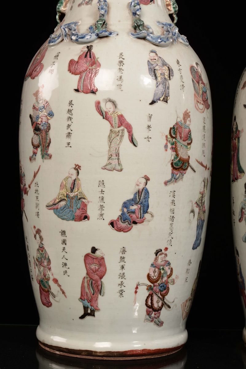 A pair of Famille-Rose porcelain vases with ideograms and figures, China, Qing Dynasty, Guangxu period (1875-1908)