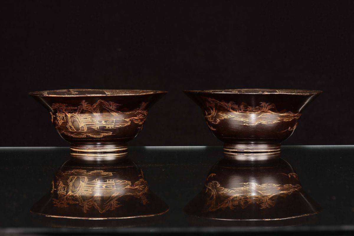 A pair of lacquered bowls with gilt decoration, China, Qing Dynasty, 18th century
