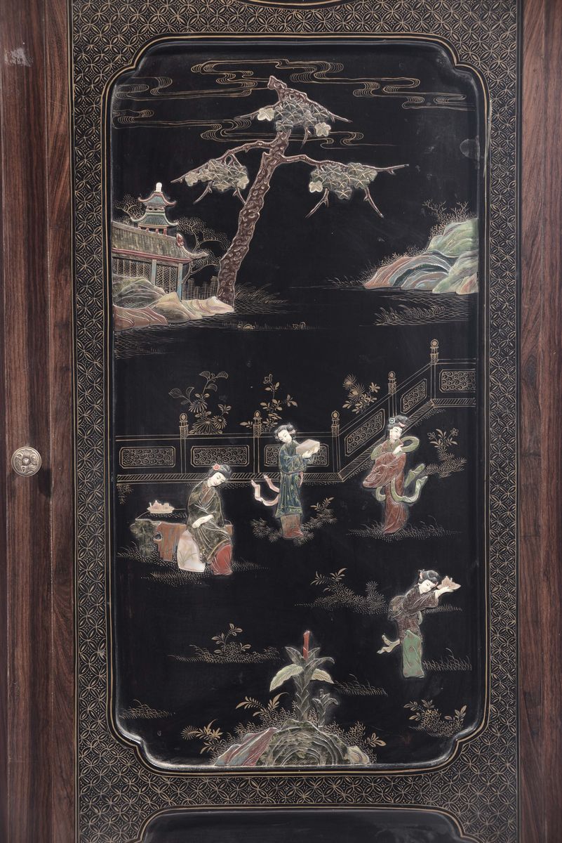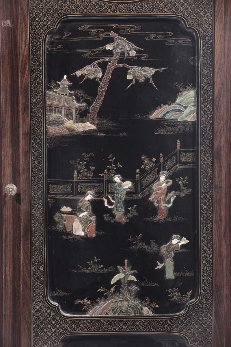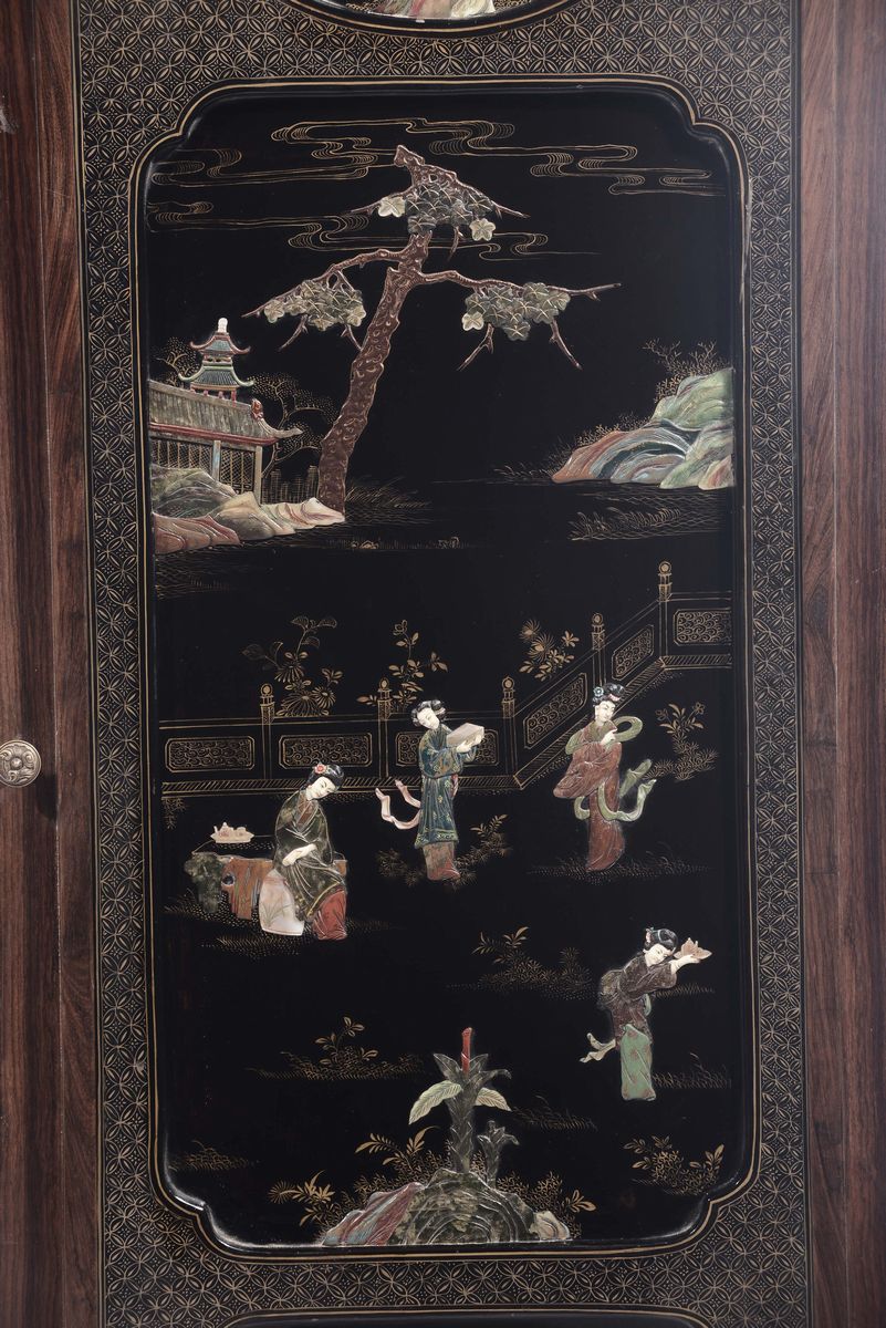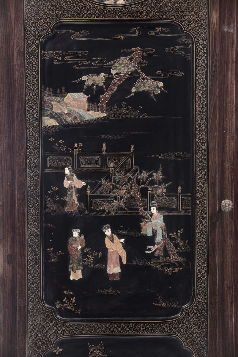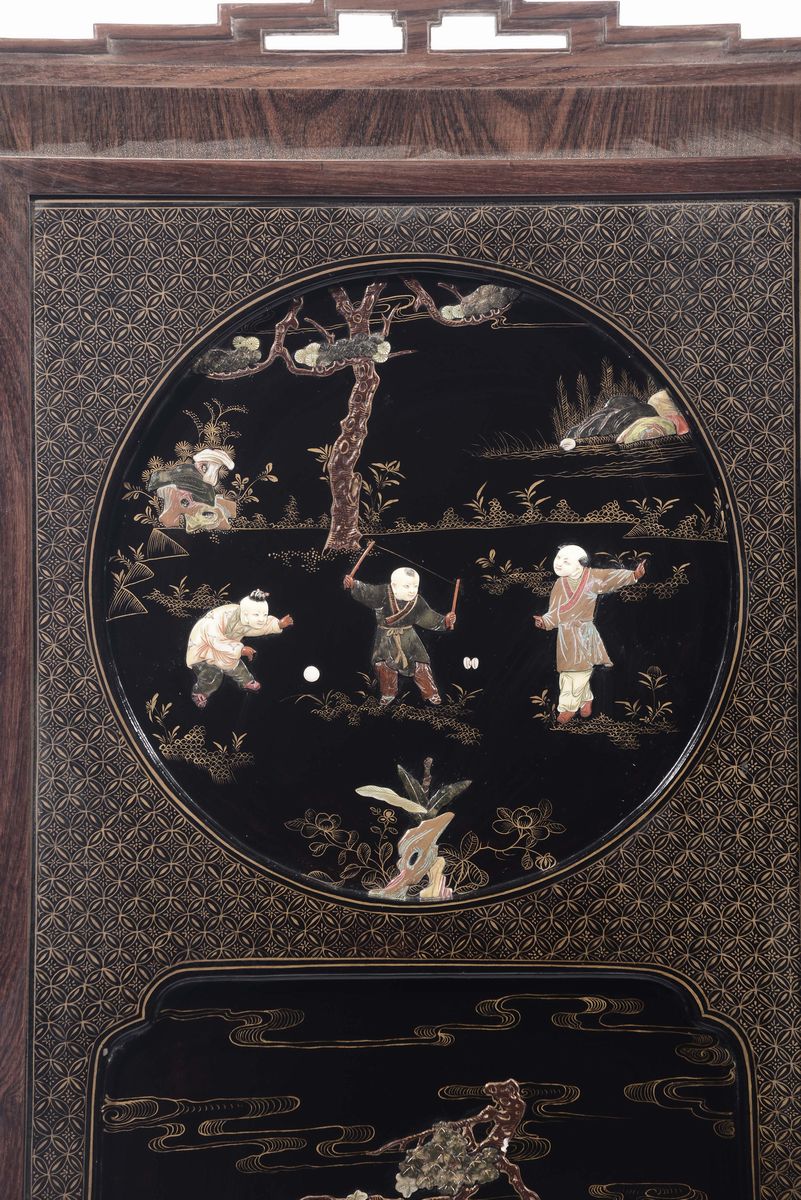 A pair of lacquered screen shutters with hard stones installed on the corners, China, Qing Dynasty, 19th century