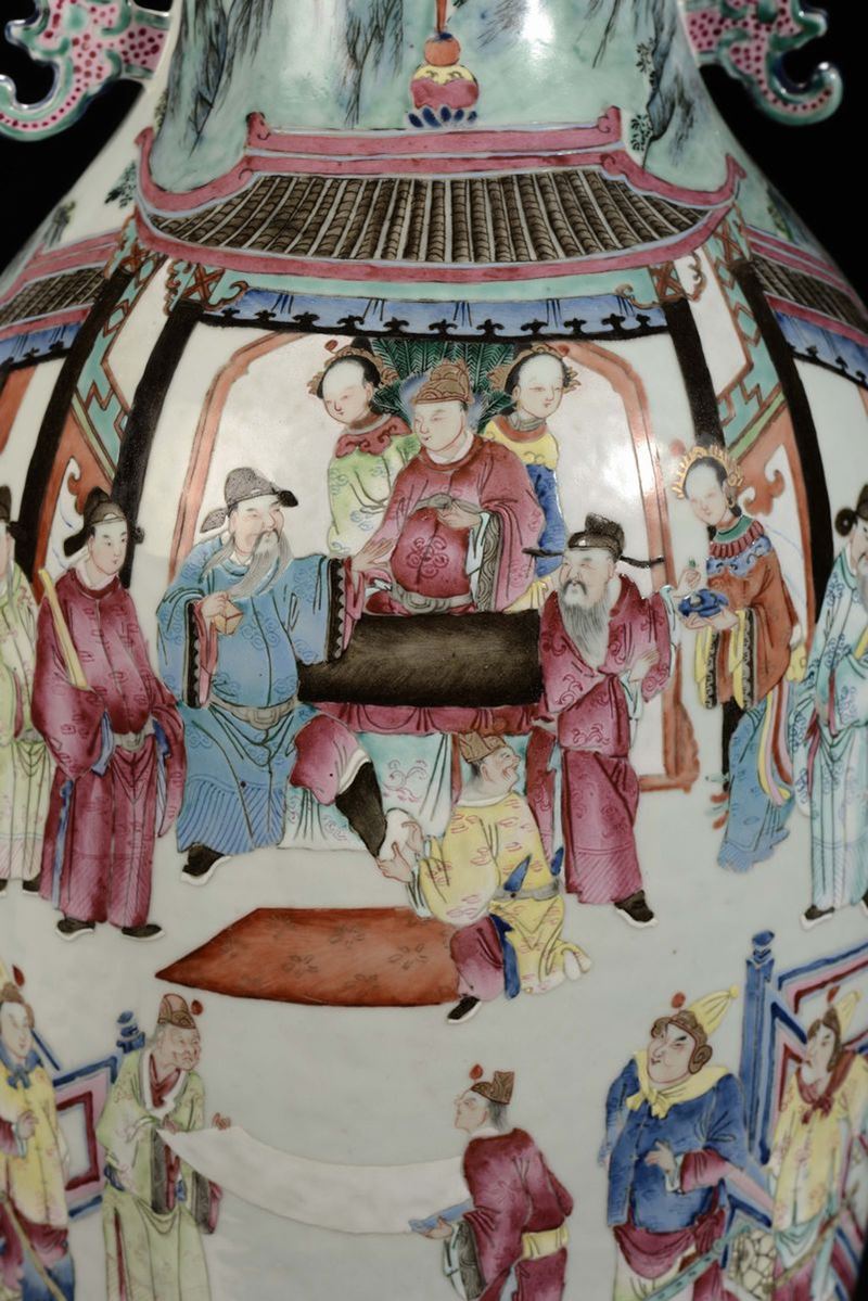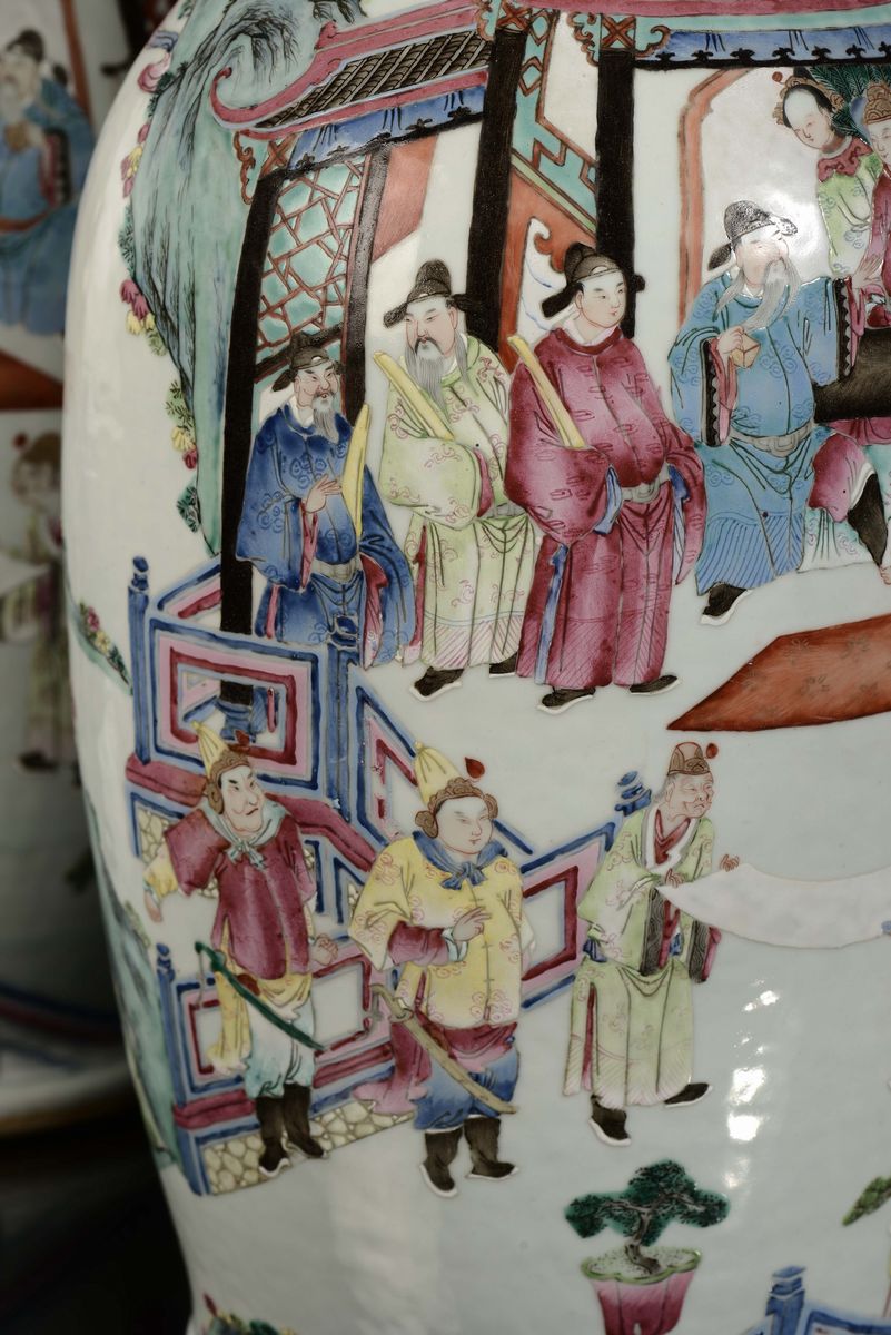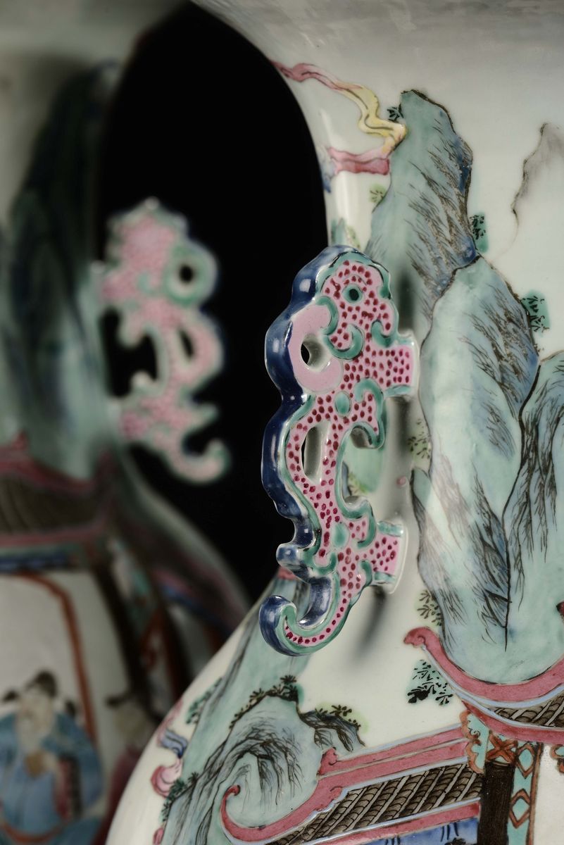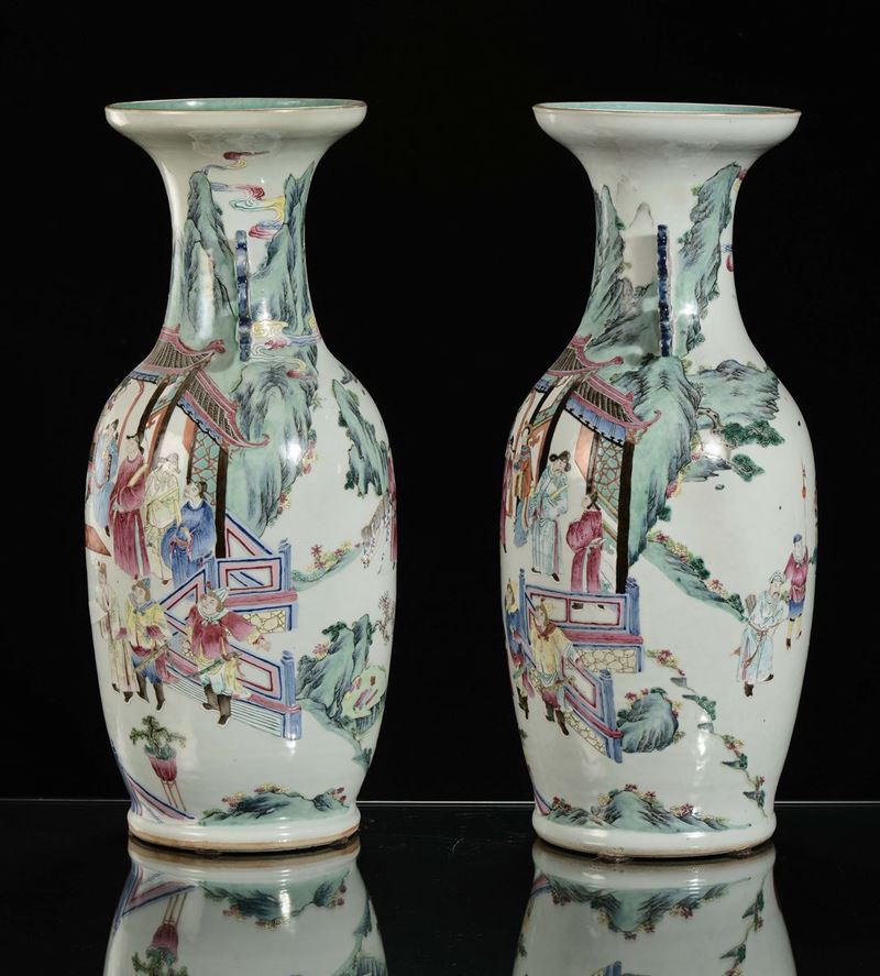 A pair of polychrome Famille-Rose porcelain vases with oriental scenes decorations, China, Qing Dynasty, late 19th centur [..]