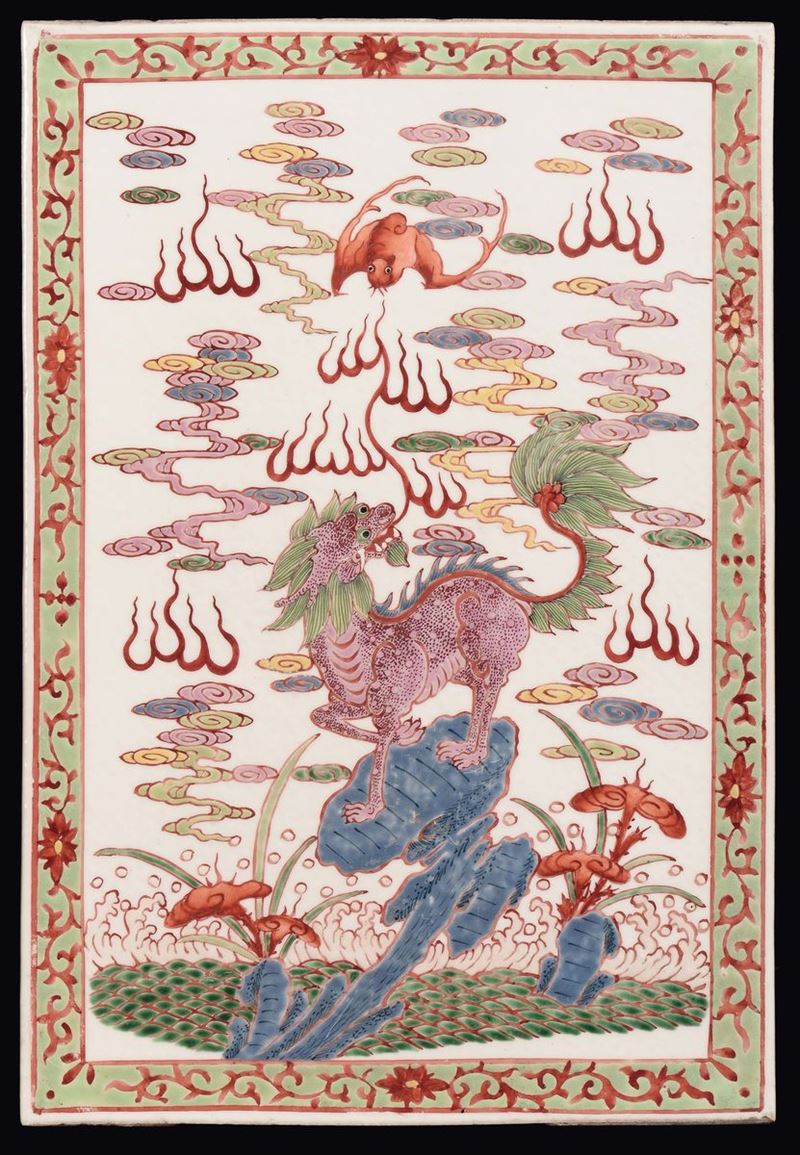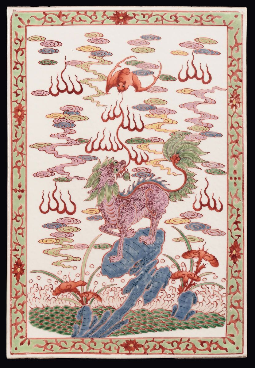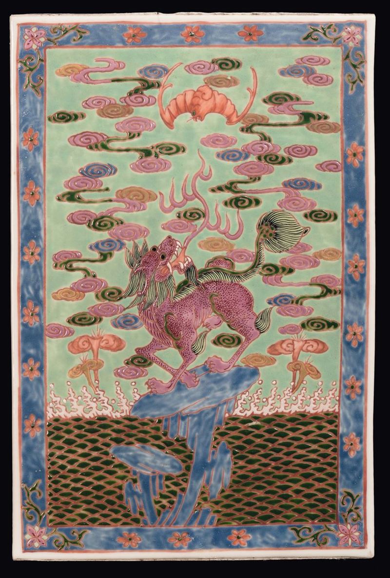 A pair of polychrome porcelain “Pho dogs” plaques, China, Republic, 20th century