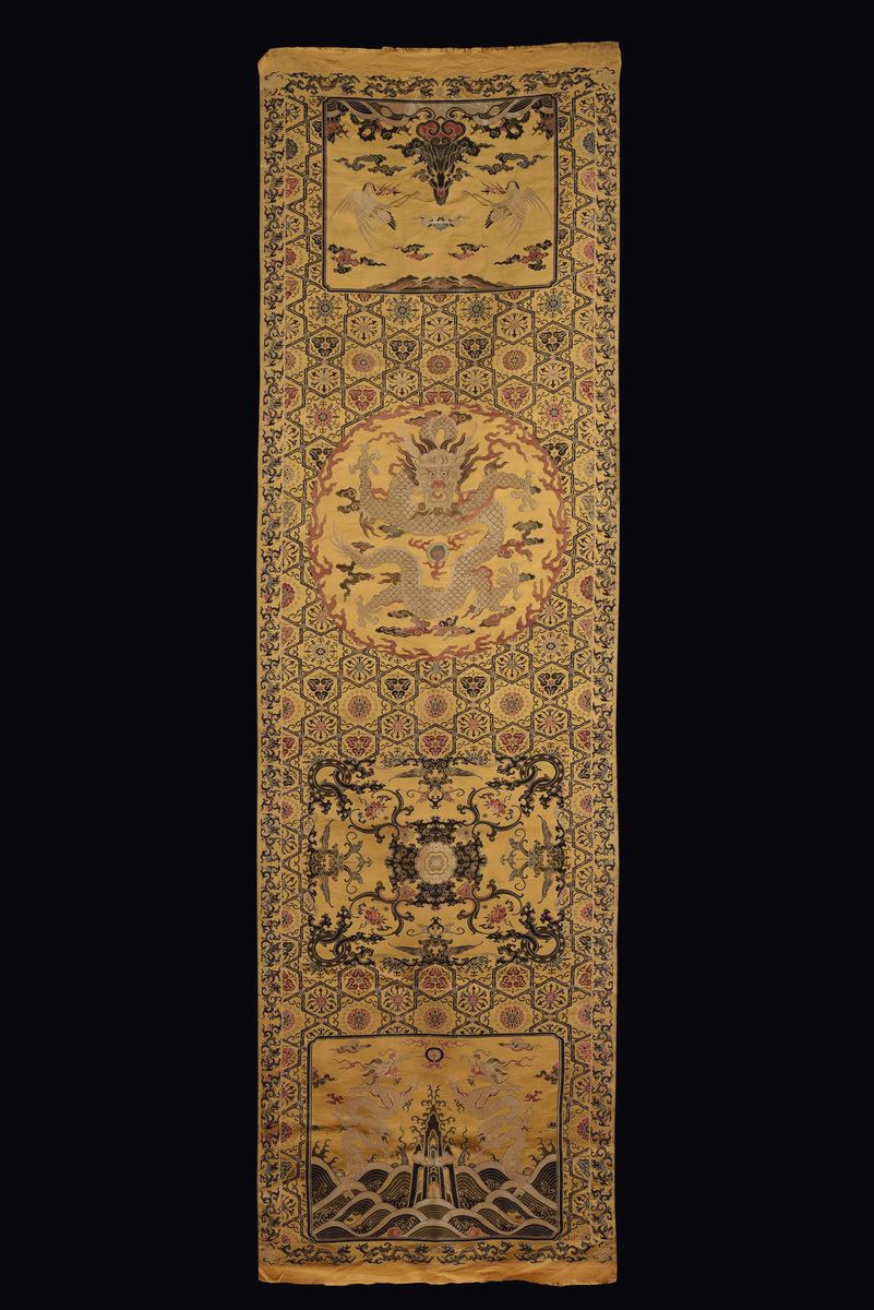 A pair of silk cloth with yellow-ground, China, 20th century