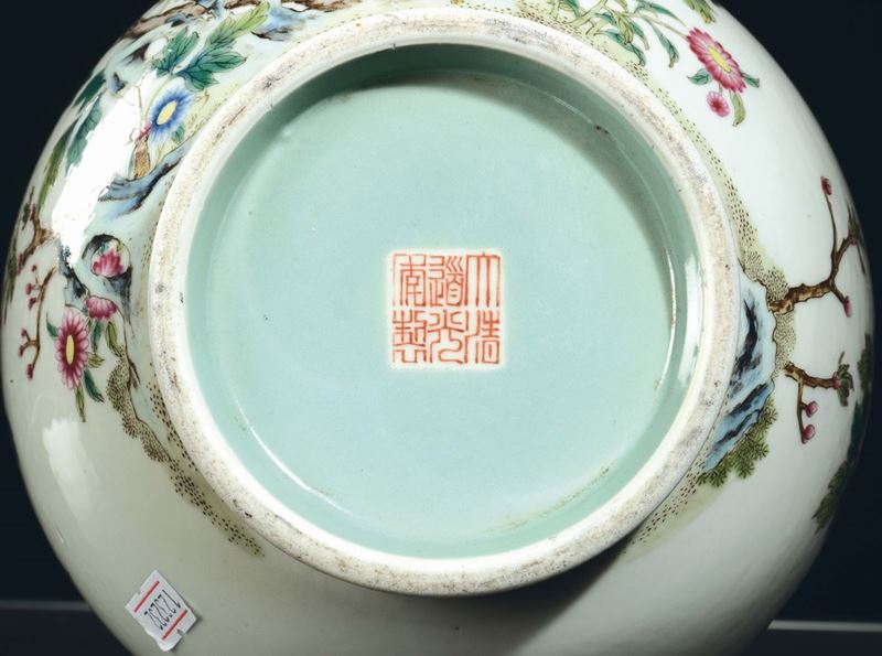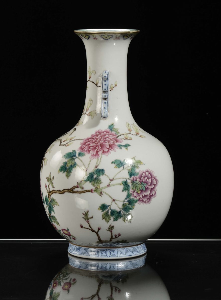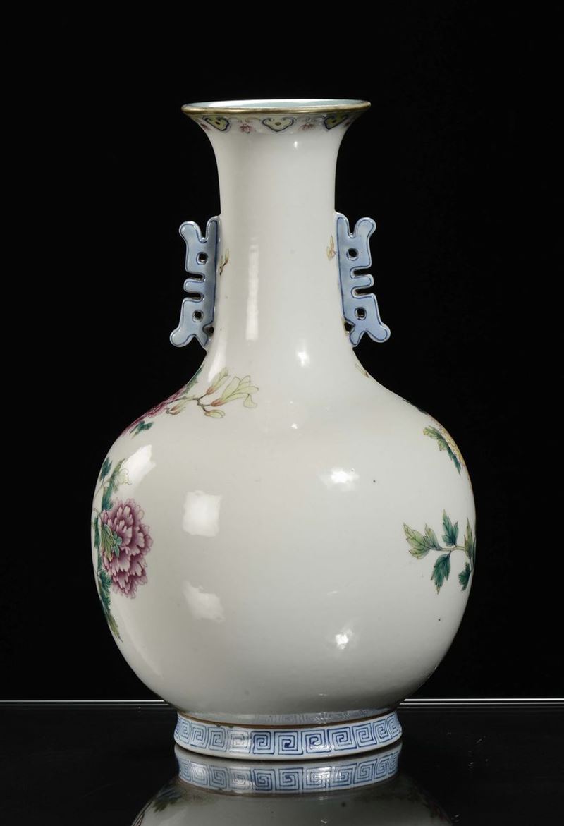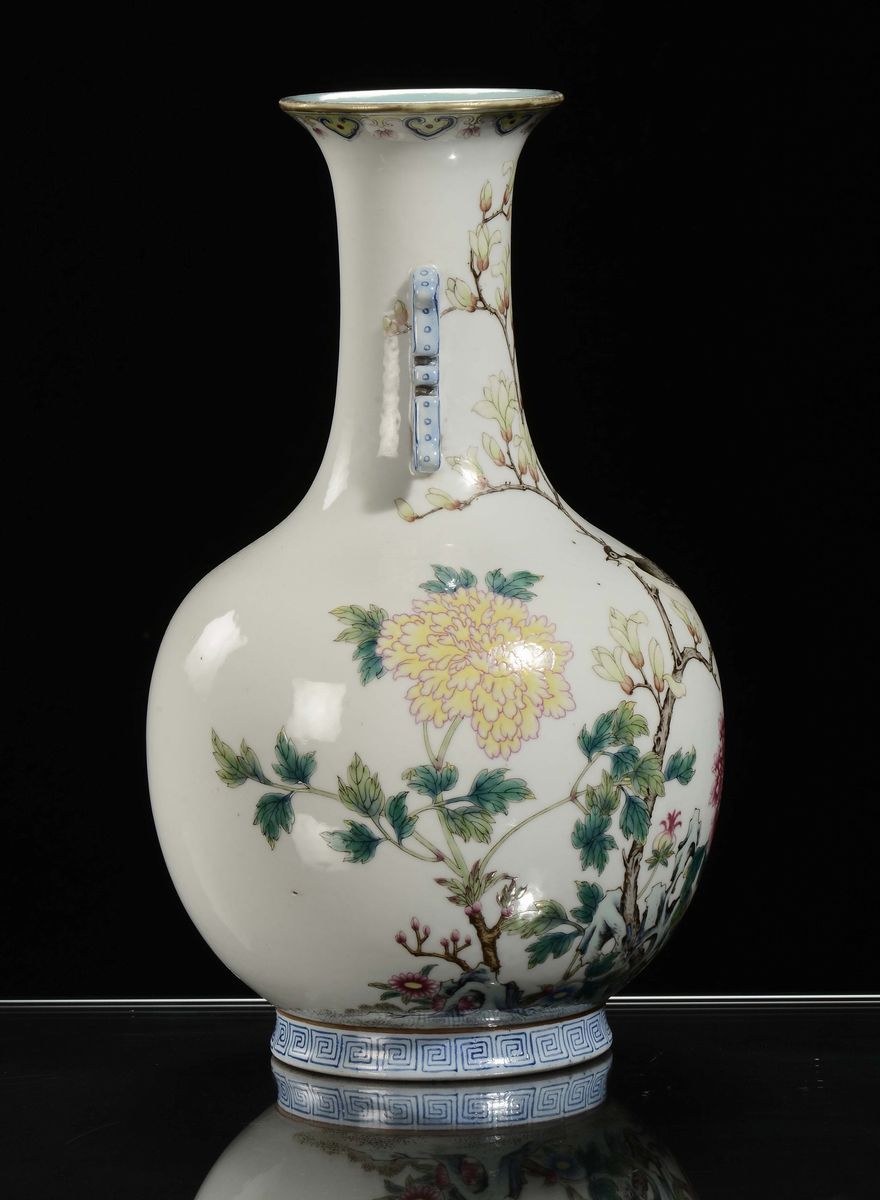 A polychrome Famille Rose porcelain vase with naturalistic decorations, China, Qing Dynasty, Daoguang mark and of the period [..]