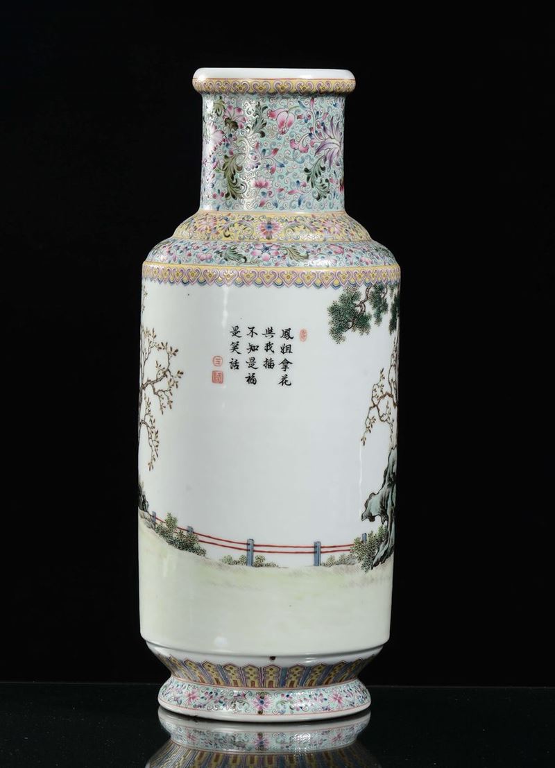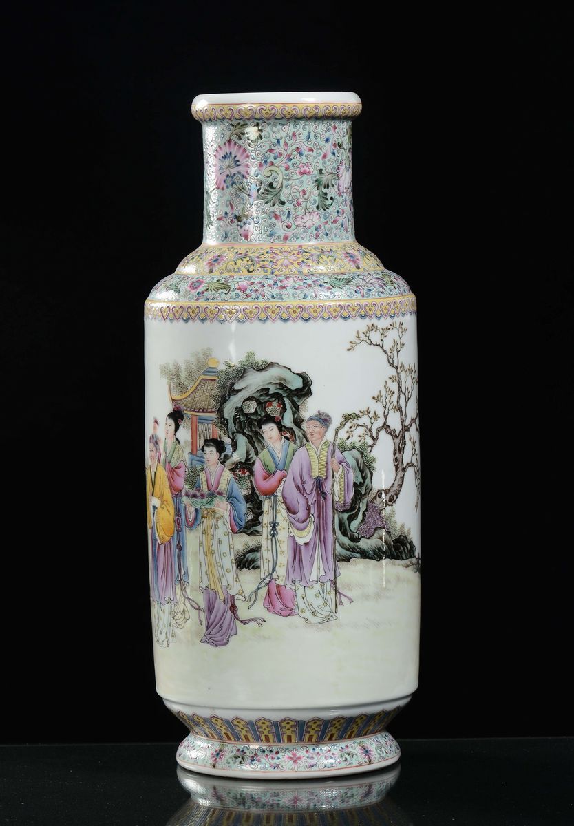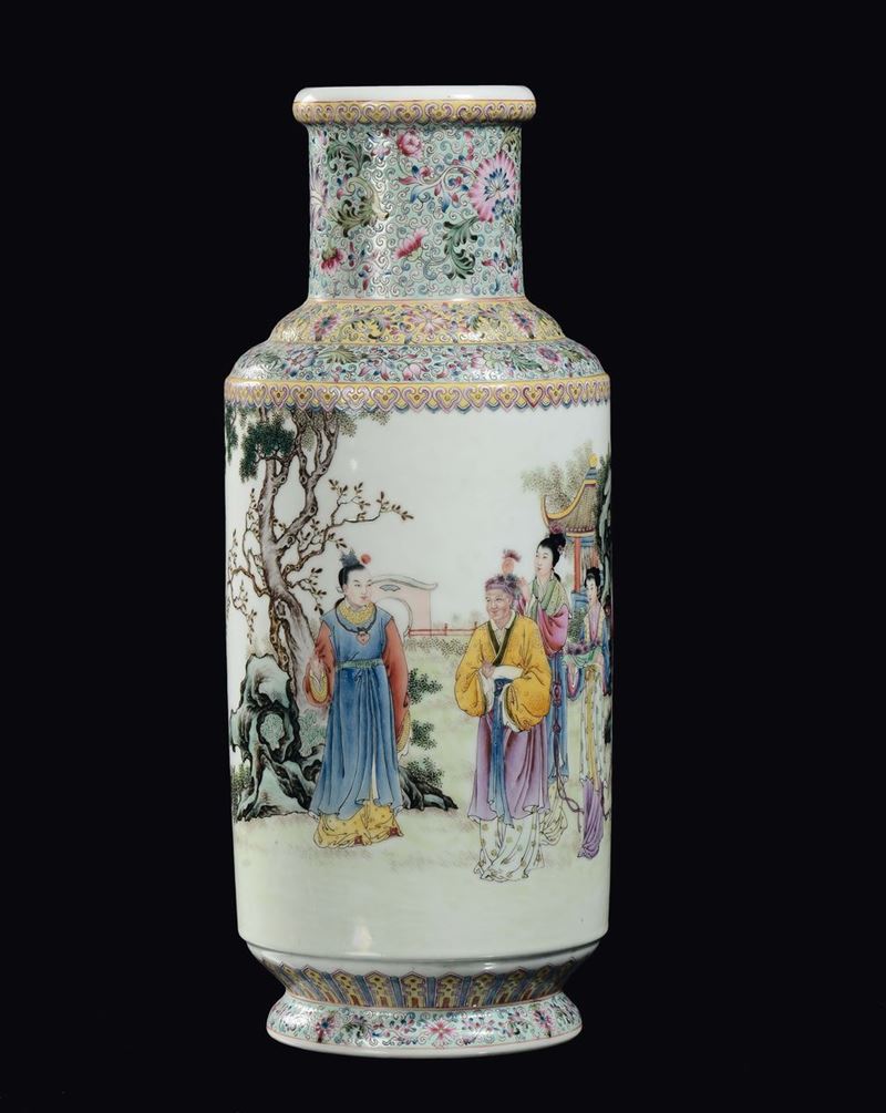 A polychrome glazed porcelain vase with figures, China, Republic, 20th century