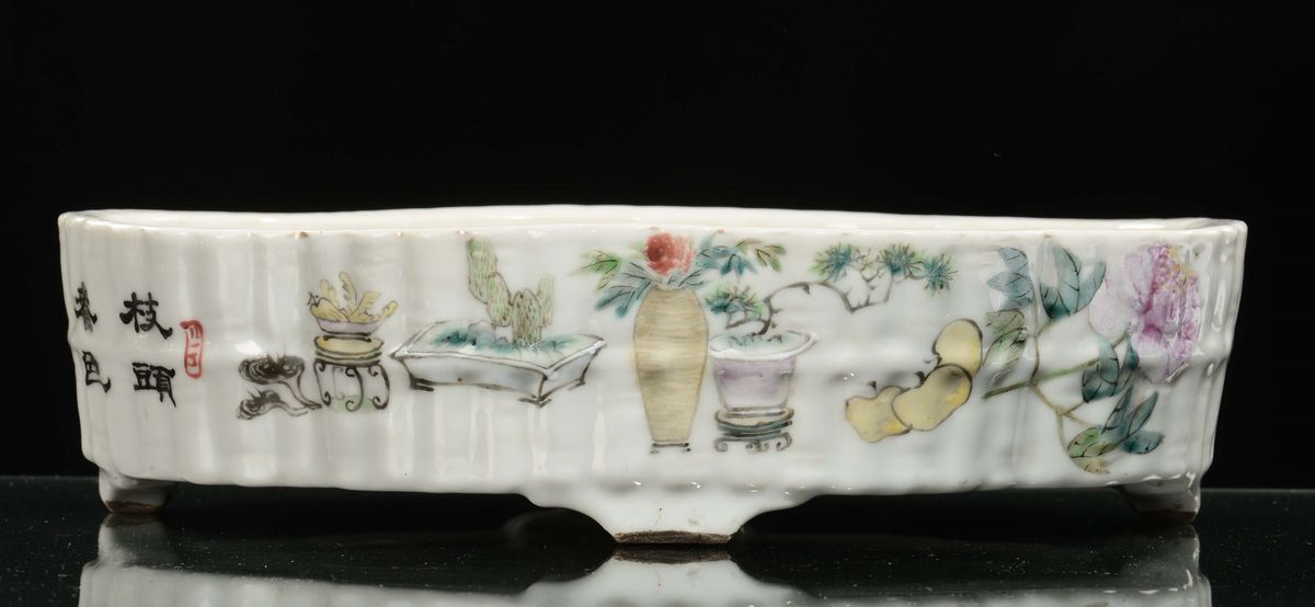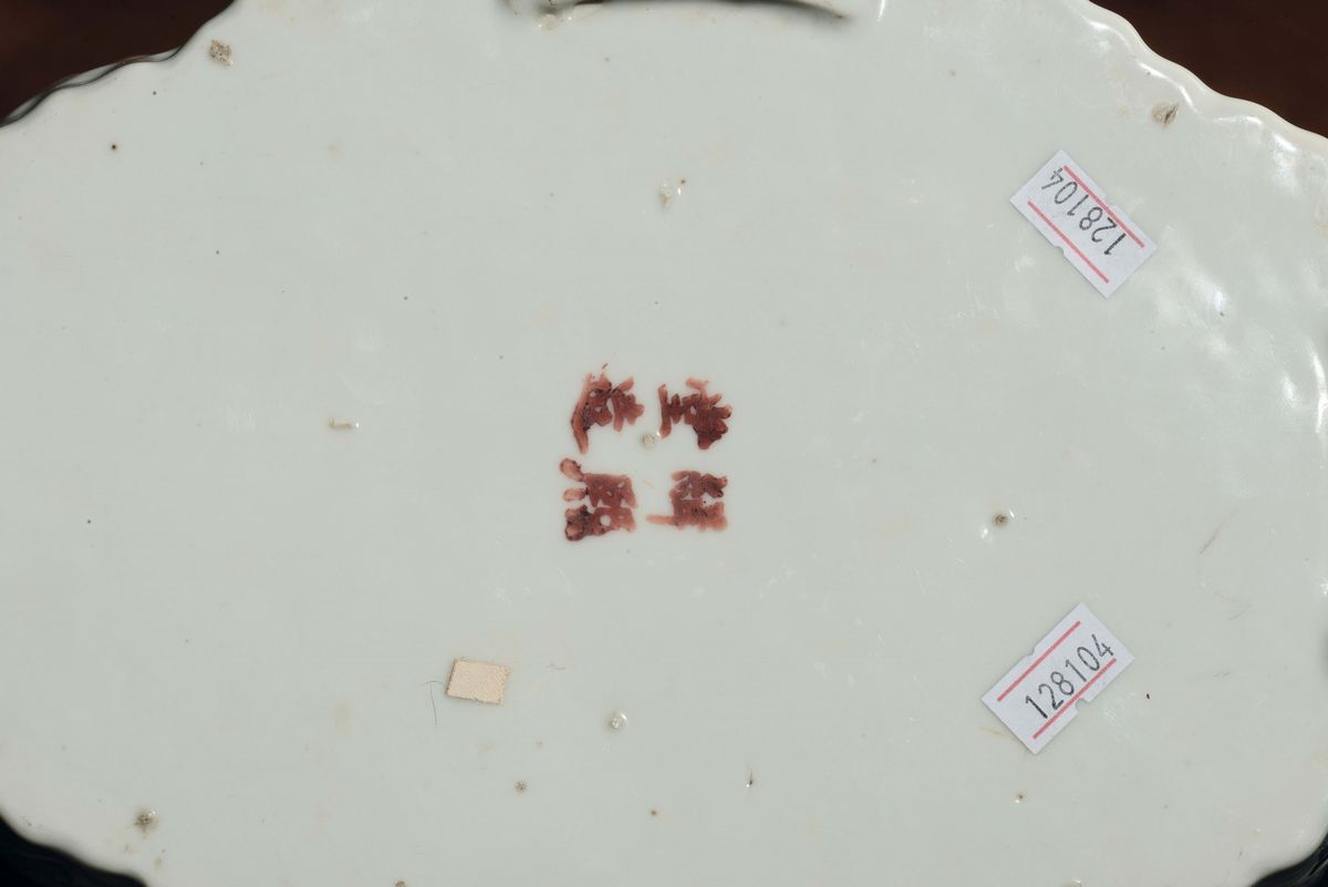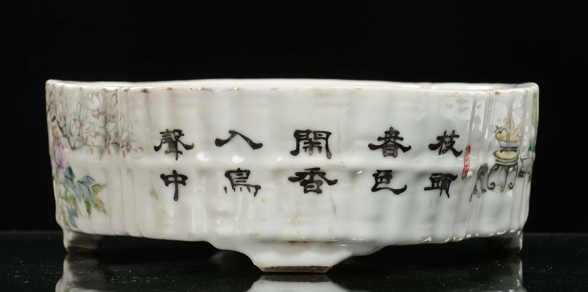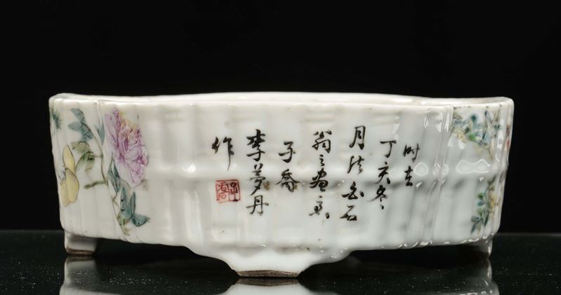 A polychrome porcelain stand with naturalistic decoration and inscriptions, China, Qing Dynasty, Qianlong period (1736-17 [..]
