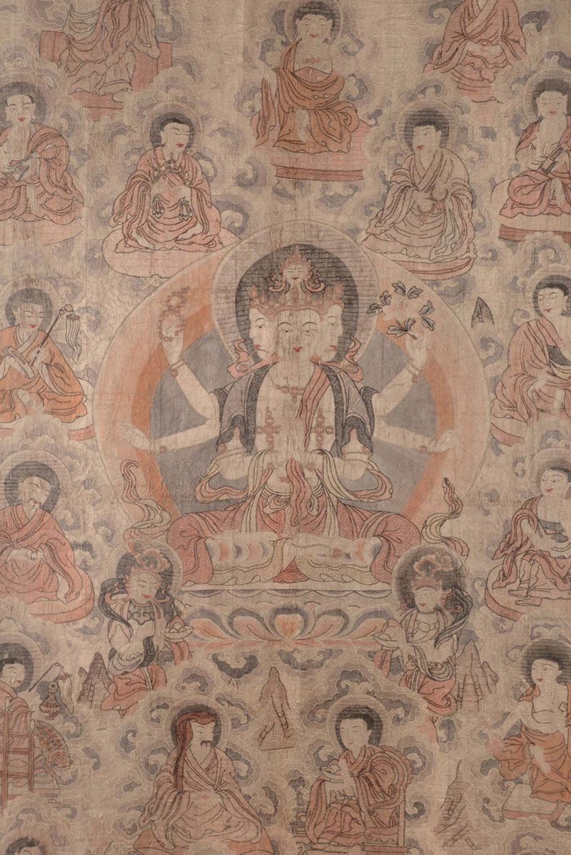 A rare fabric Kesi Thangka with Tibetan divinities, China, Qing Dynasty, 18th century
