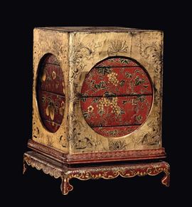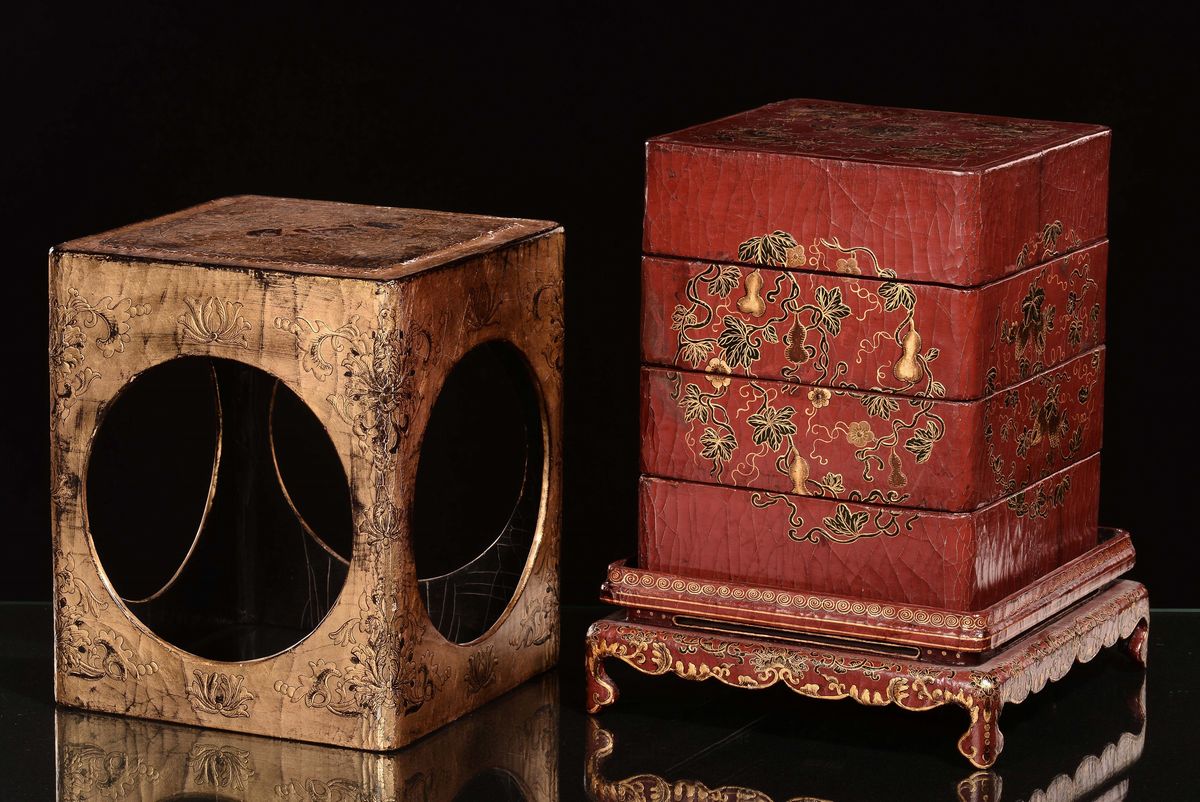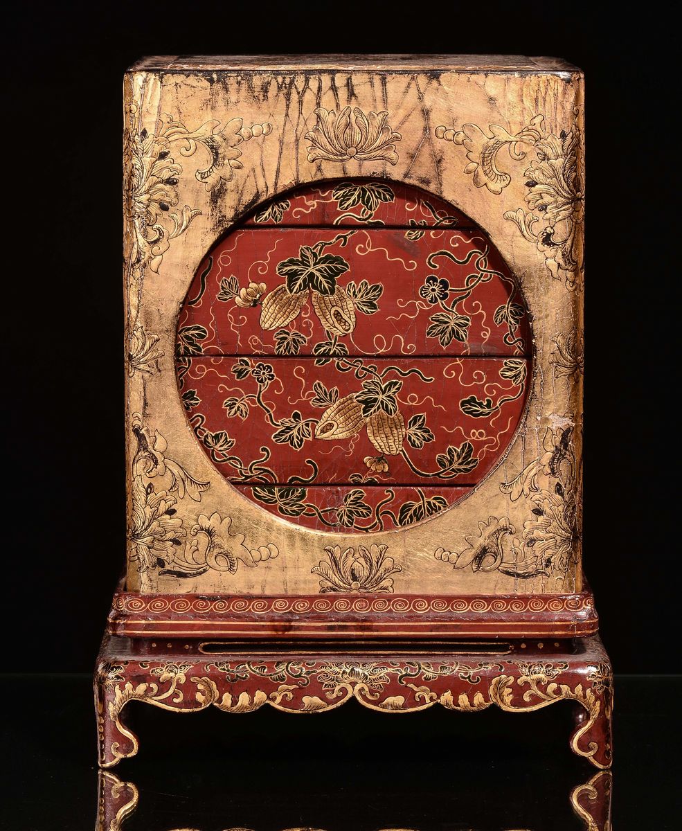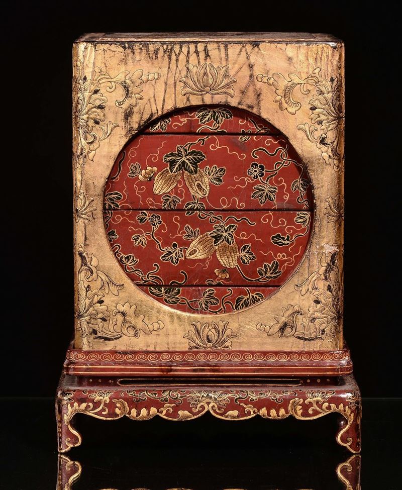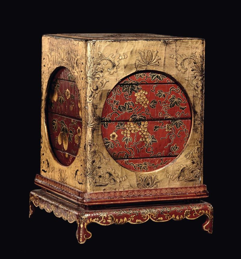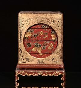 A rare lacquered and gilt wood lunchbox, China, Qing Dynasty, Qianlong mark and of the period (1736-1796)