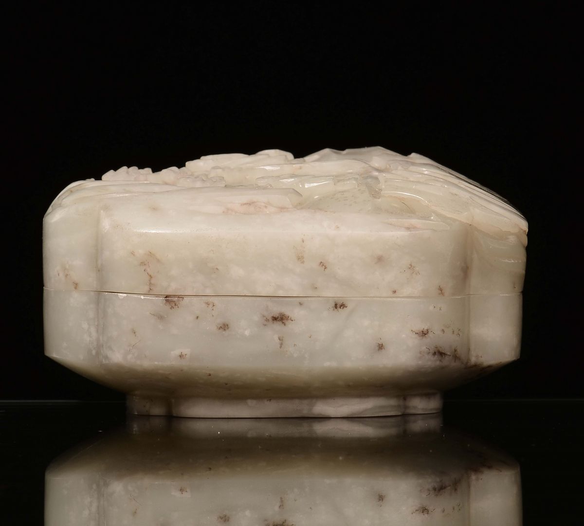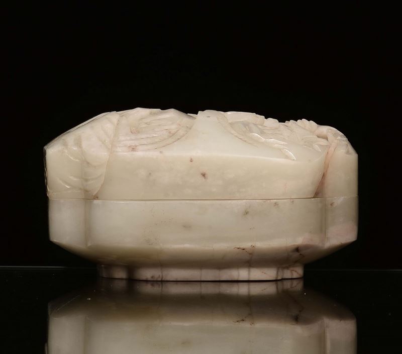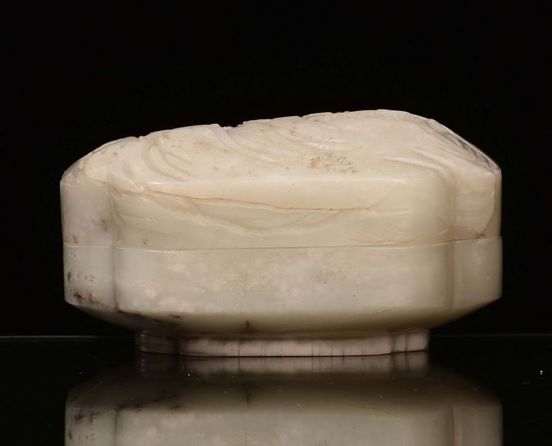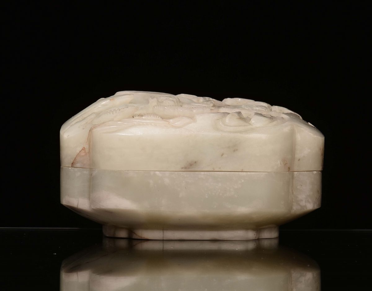 A small Celadon jade box with landscape engraving, China, Qing Dynasty, 19th century