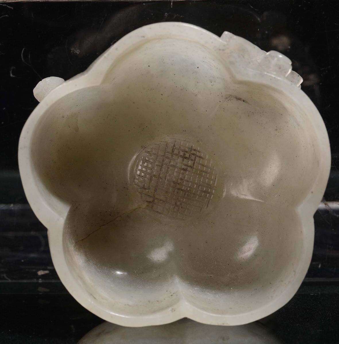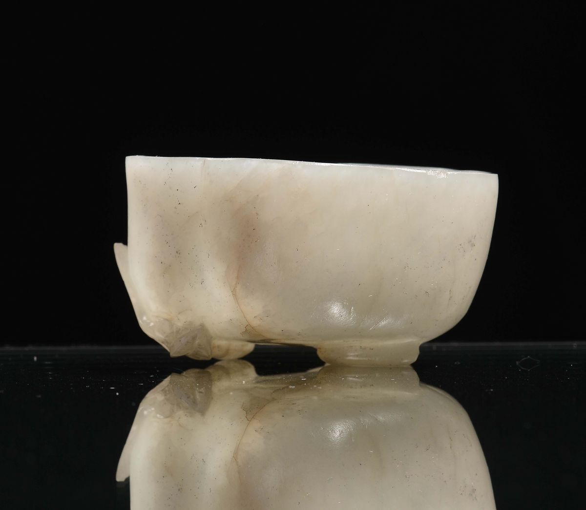 A small white jade flower libation cup, China, Qing Dynasty, Qianlong period (1736-1796)
