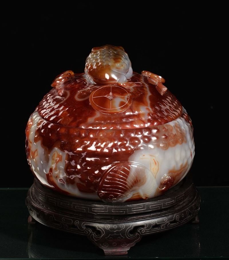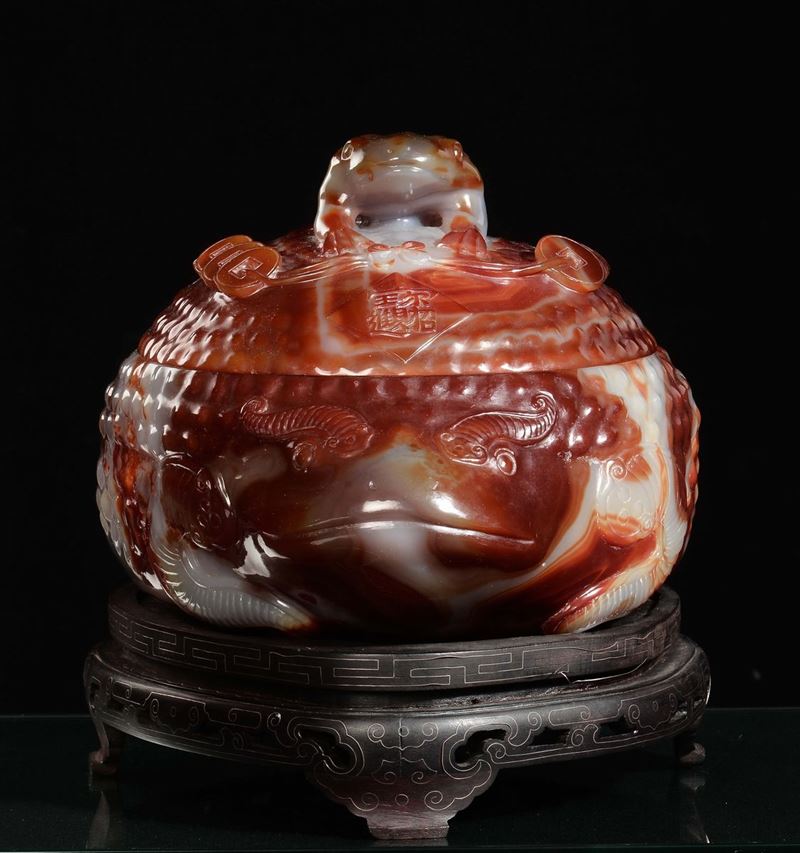 A violet and orange agate frog-shaped soup tureen, China, Republic, 20th century