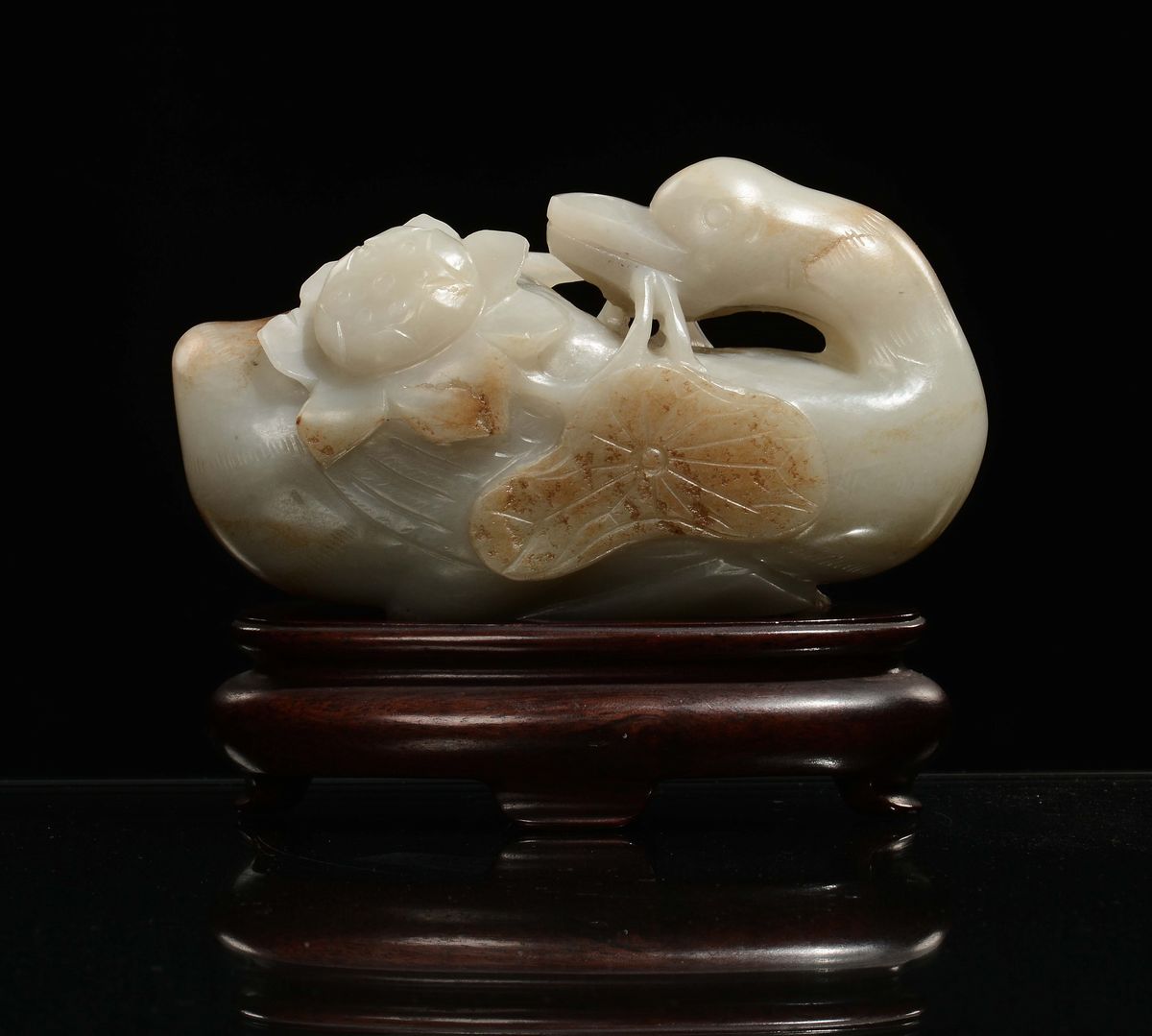 A white jade and russet carved duck, China, Qing Dynasty, Qianlong period (1736-1796)