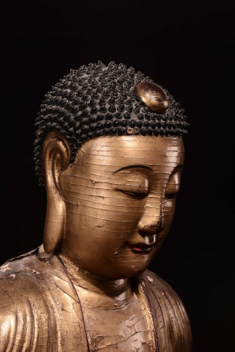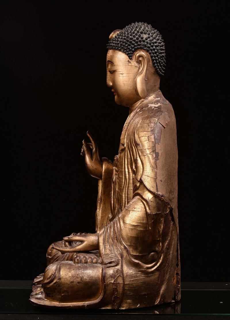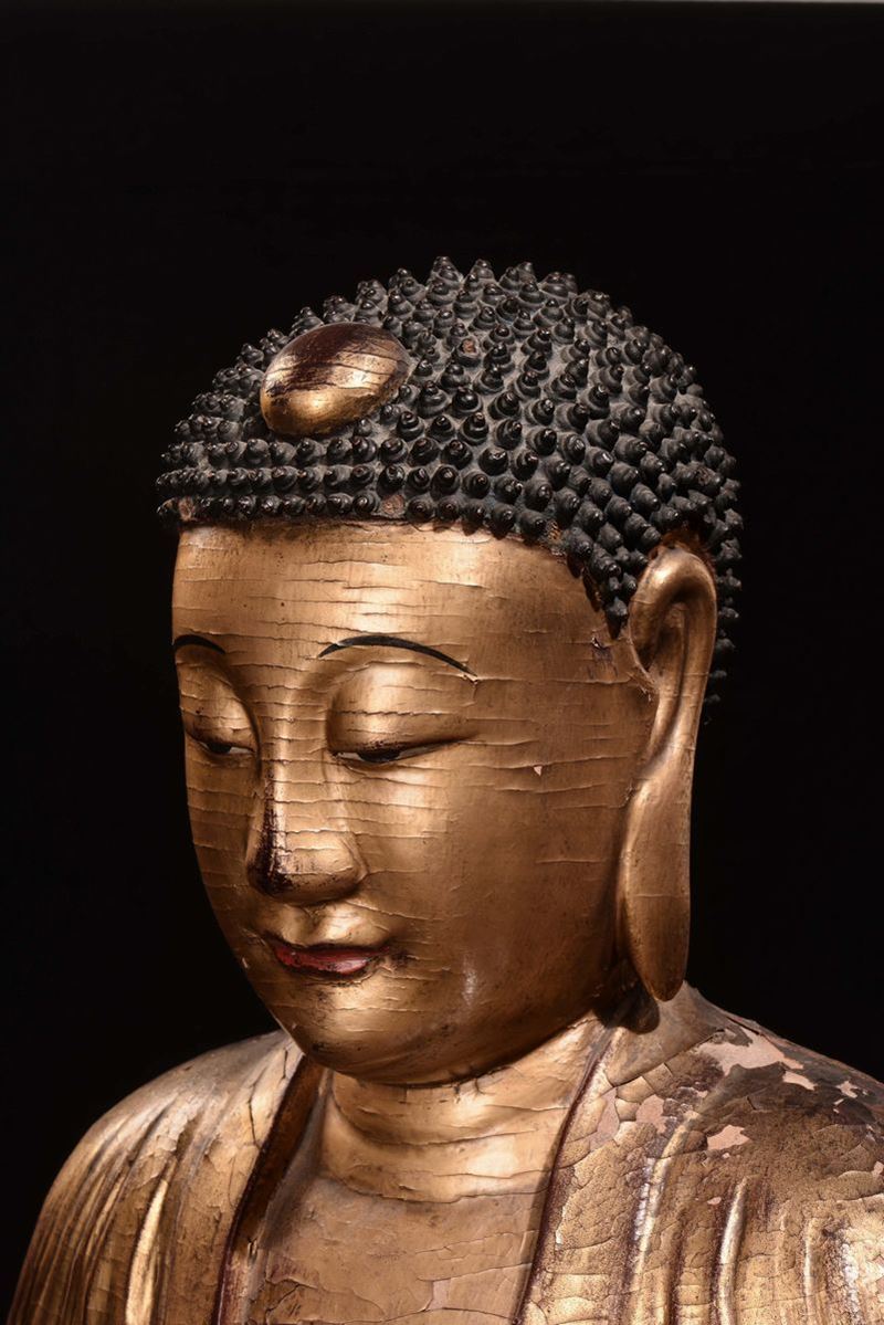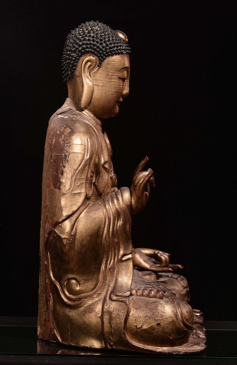 An important gilt wood Buddha, China, Yuan Dynasty (1279-1368)